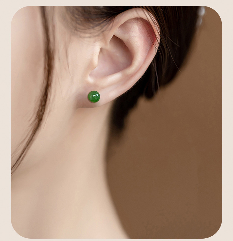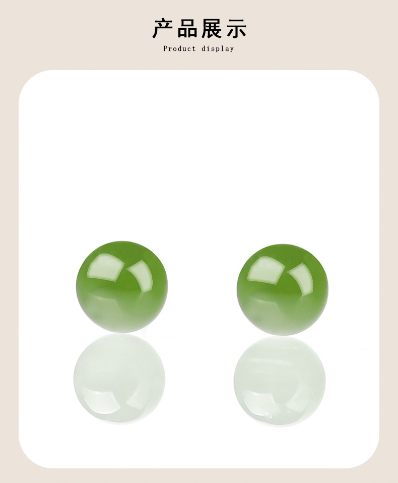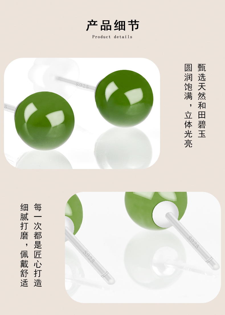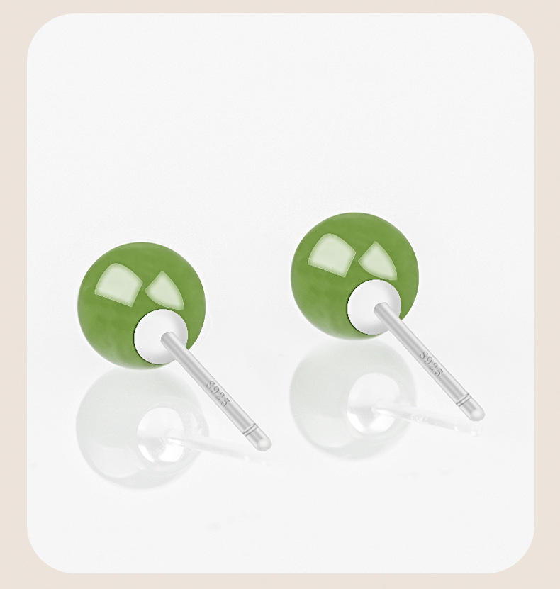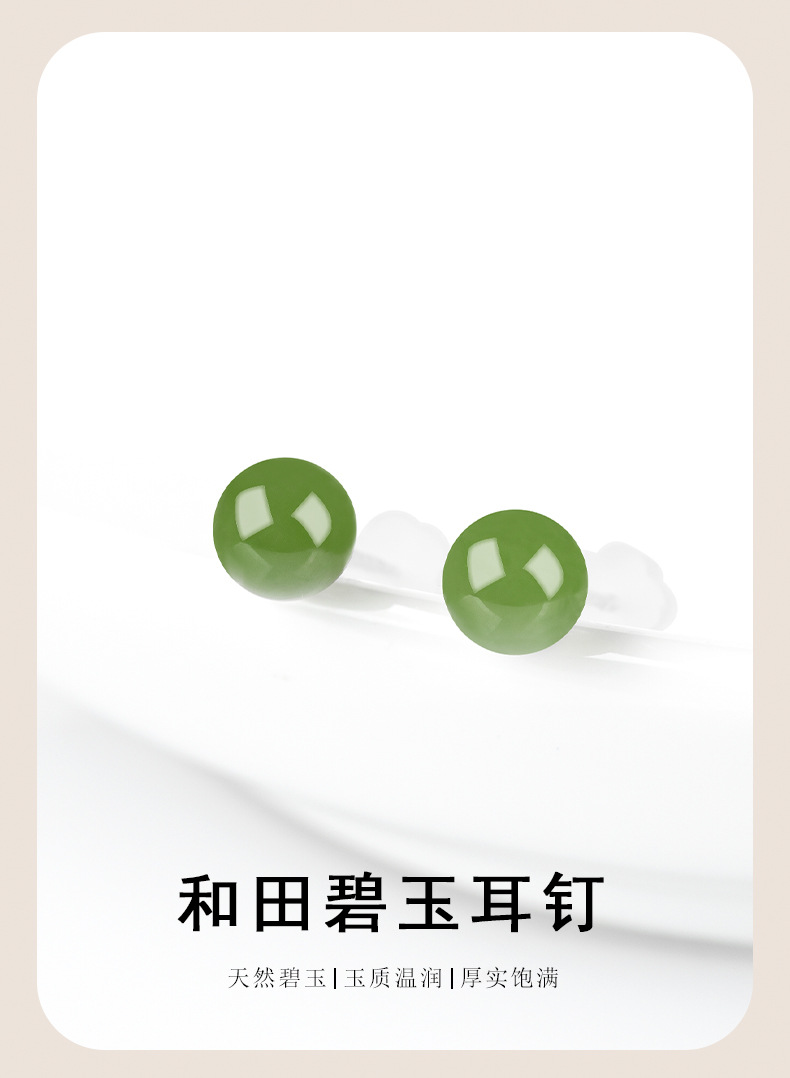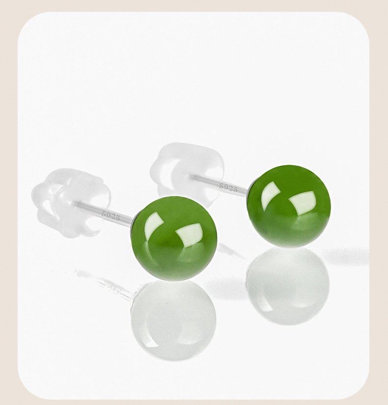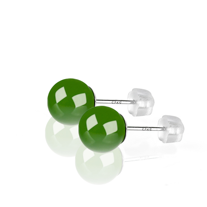 Оригинальные товары натуральные гетанские нефритовые яшмы круглые бусины нефритовые серьги S925, инкрустированные серебром, модные высококачественные женские серьги оптом