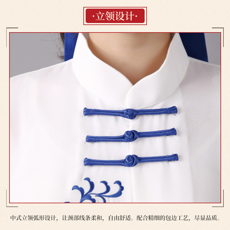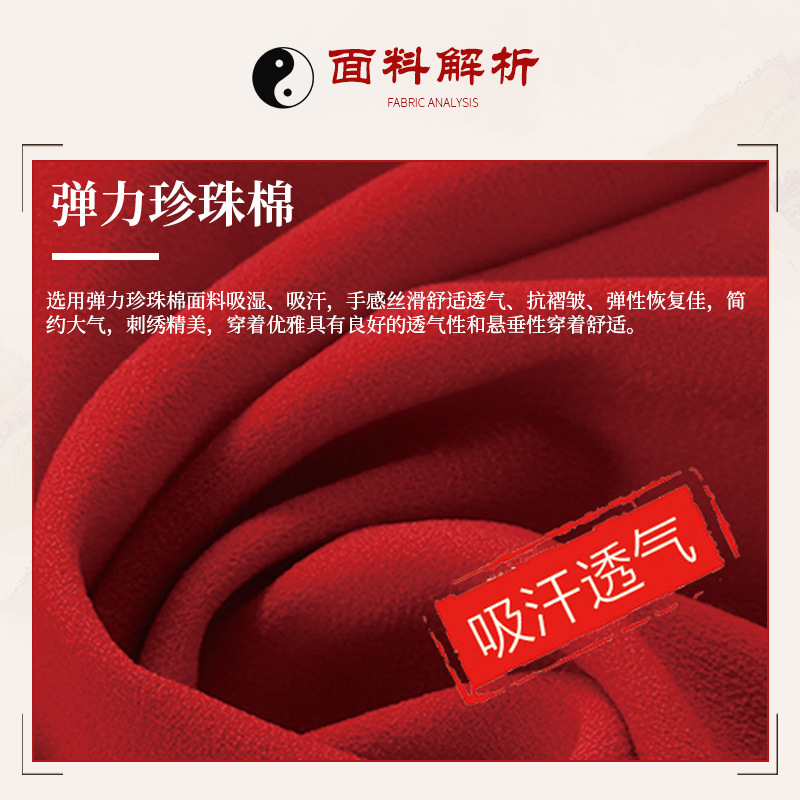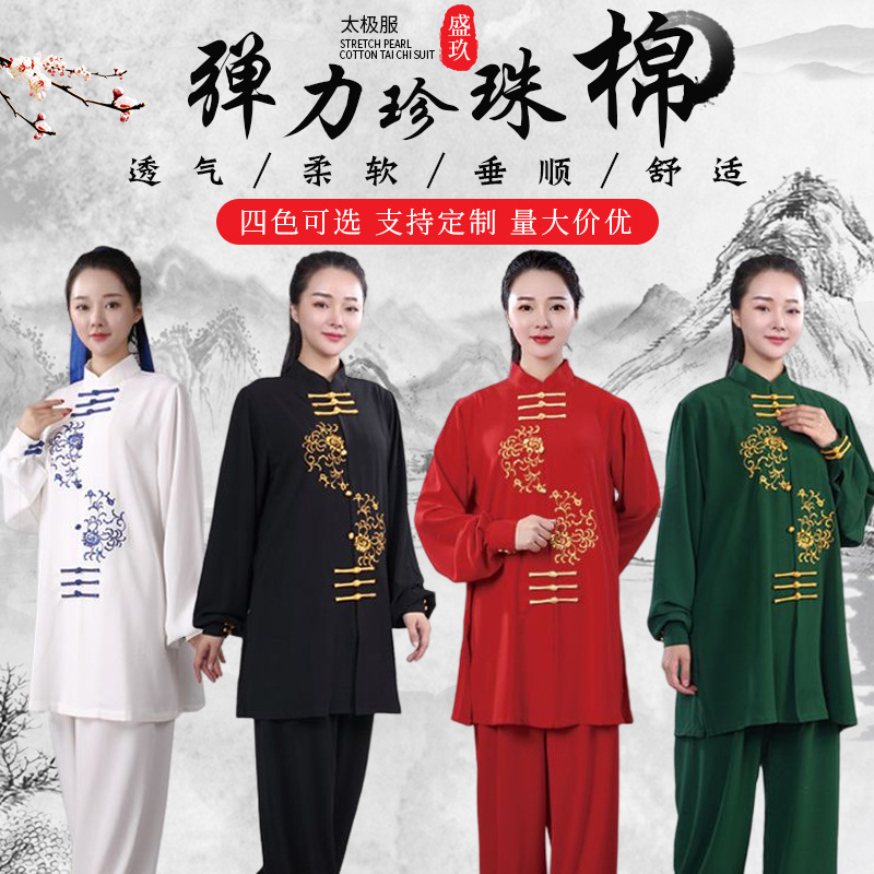 Эластичный жемчужный хлопковый костюм тай-чи с вышивкой костюм для выступлений Тай-Чи-ушу весна и осень утренний костюм для упражнений с длинным рукавом для среднего и пожилого возраста