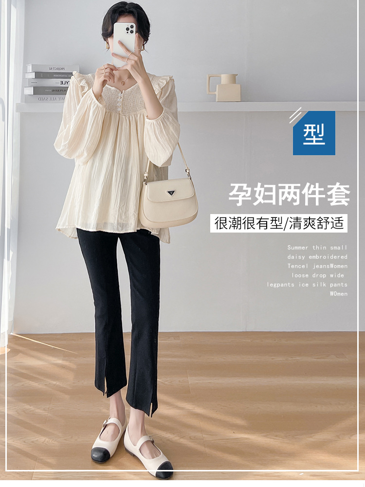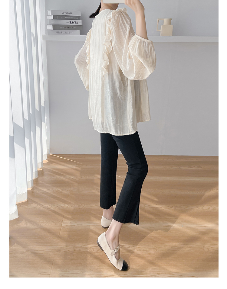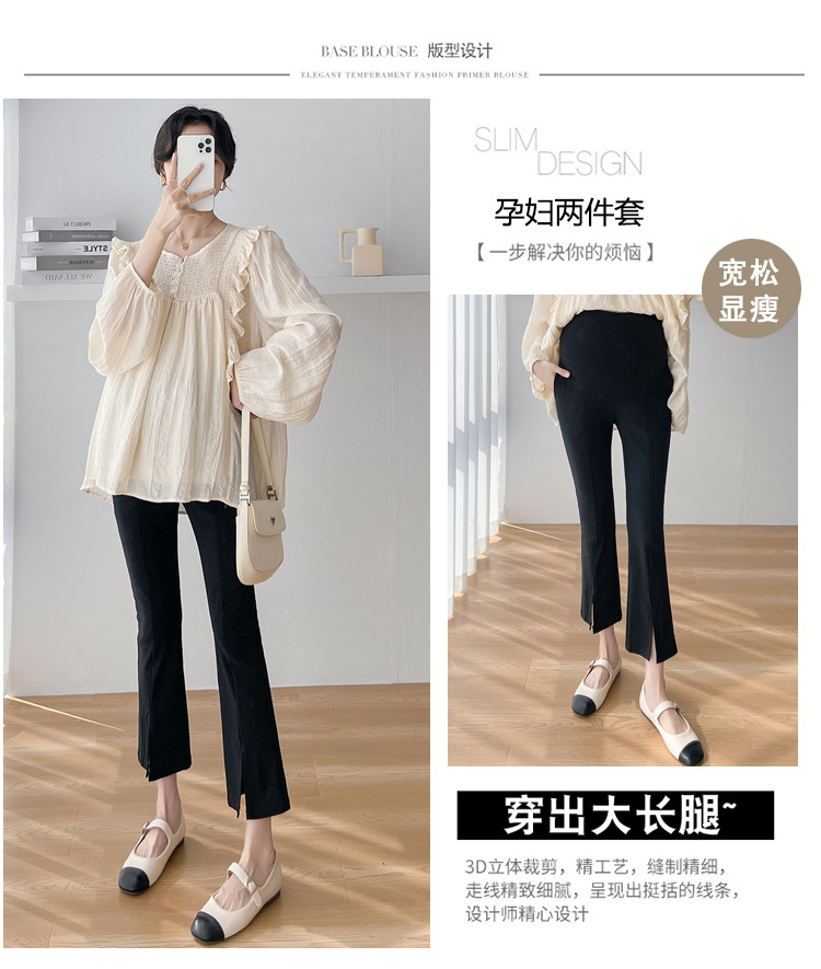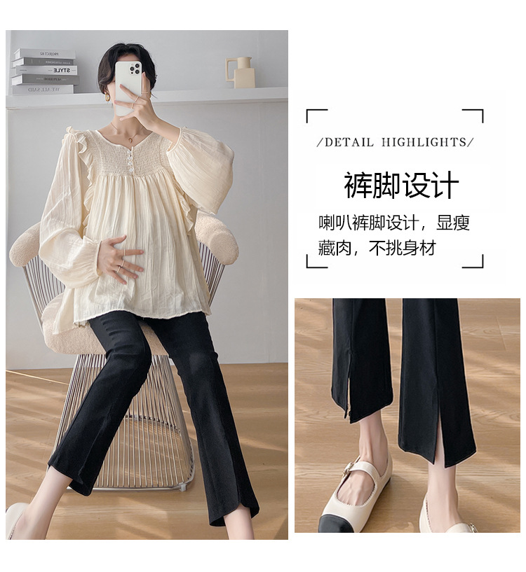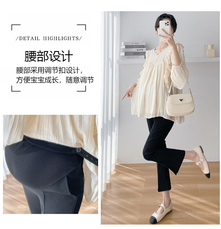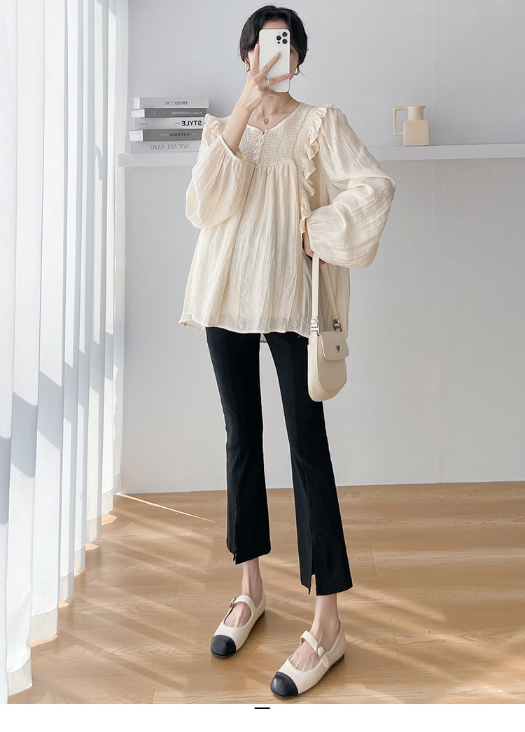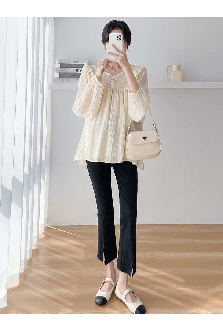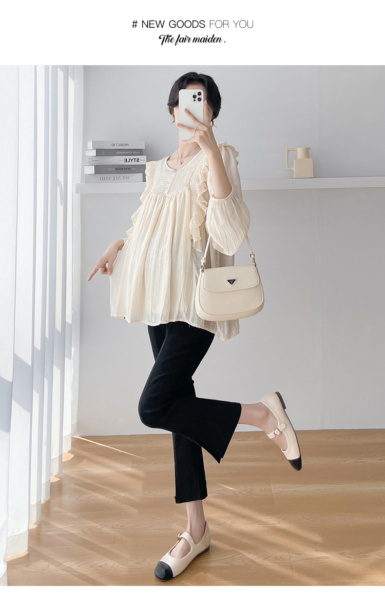 Новая весенне-осенняя одежда для беременных: свободный топ-рубашка с рюшами, V-образным вырезом и длинными рукавами