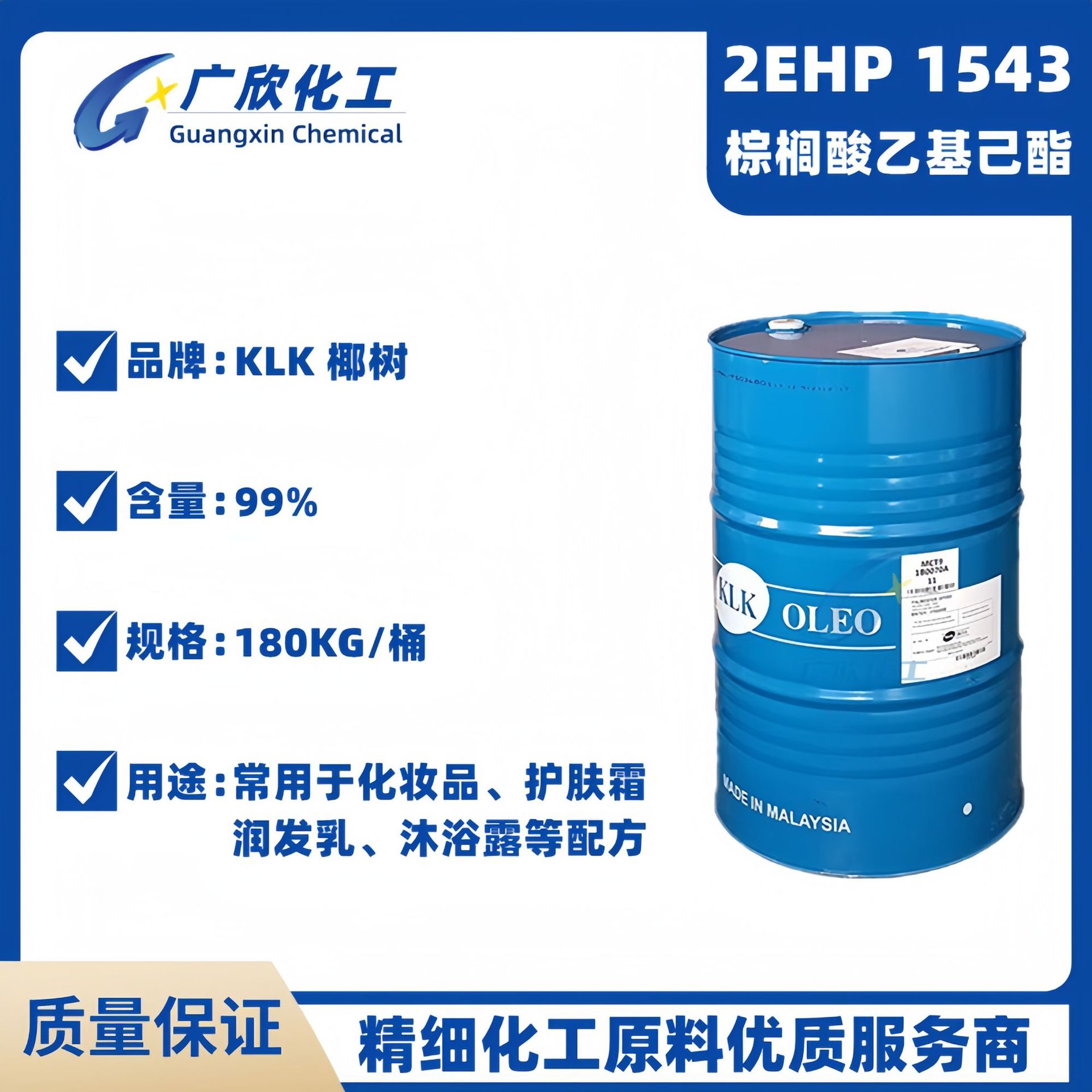 [概述] :棕榈酸乙基己酯属于合成酯,广泛用于护肤品和化妆品中,性质稳定,不易氧化或产生异味。