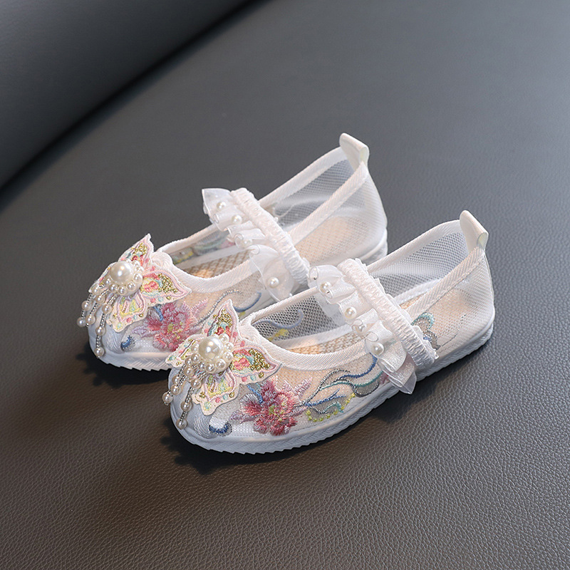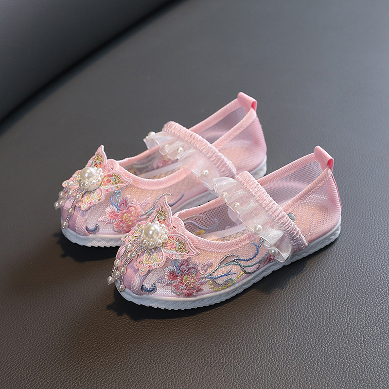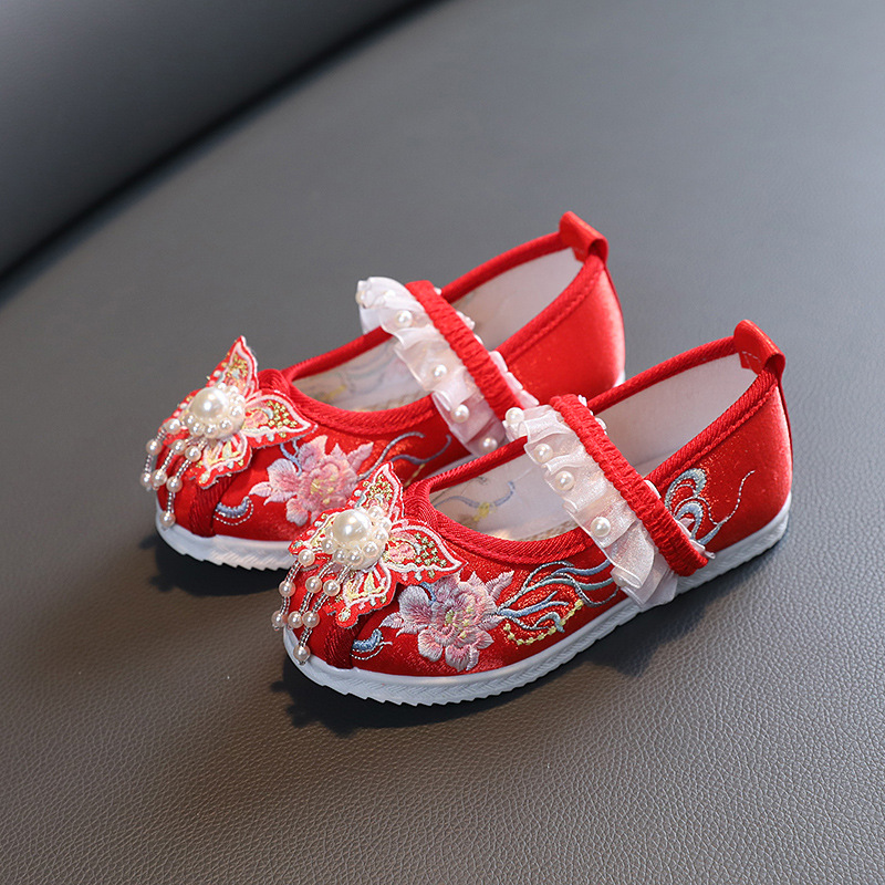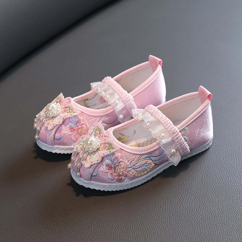 Весенняя обувь Hanfu для девочек, детская обувь Old Beijing из ткани с мягкой подошвой, антикварная обувь, вышитая обувь, милая детская обувь принцессы