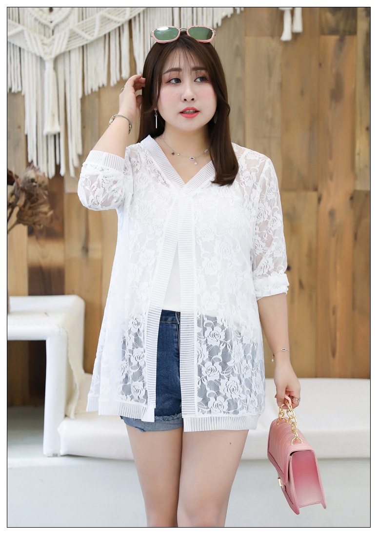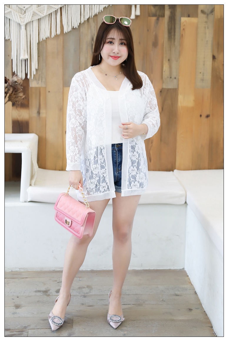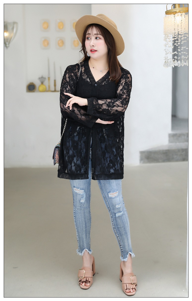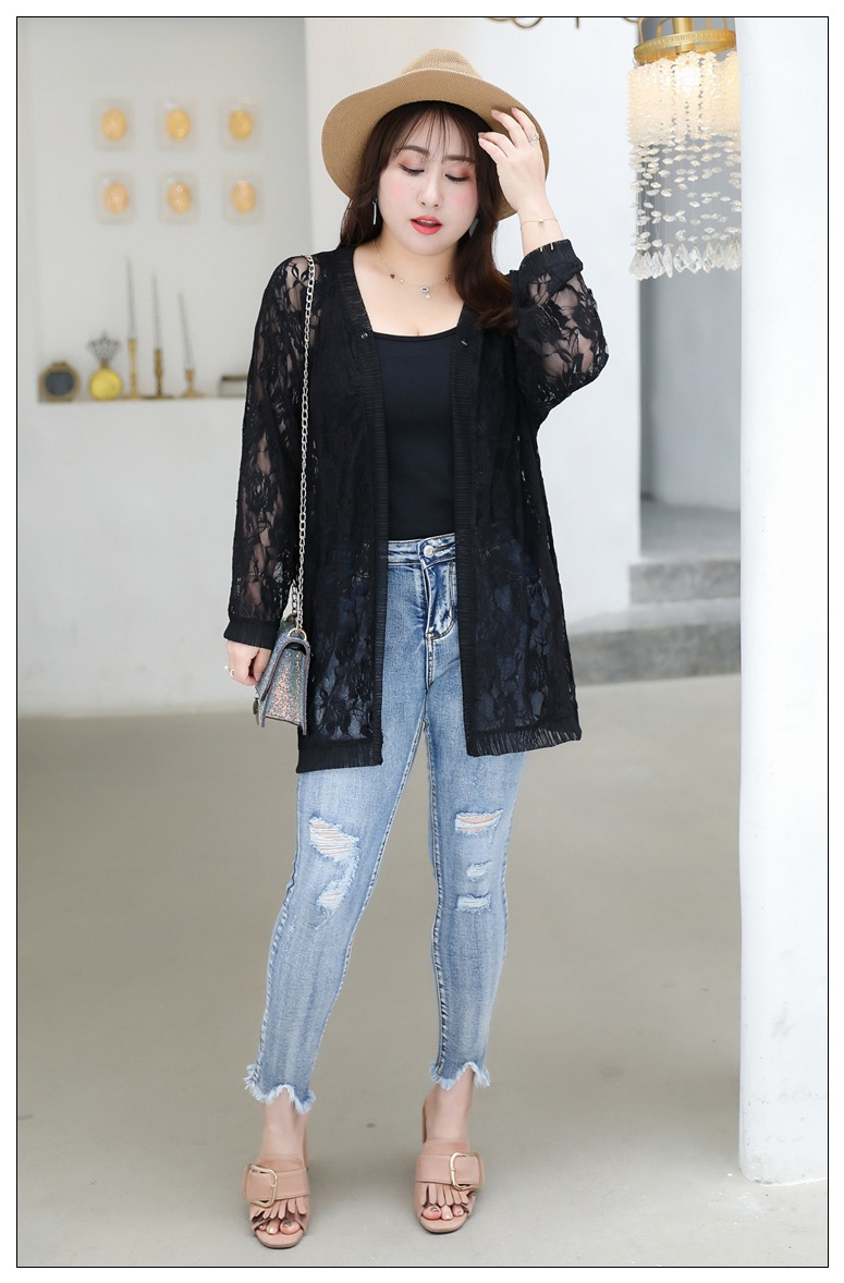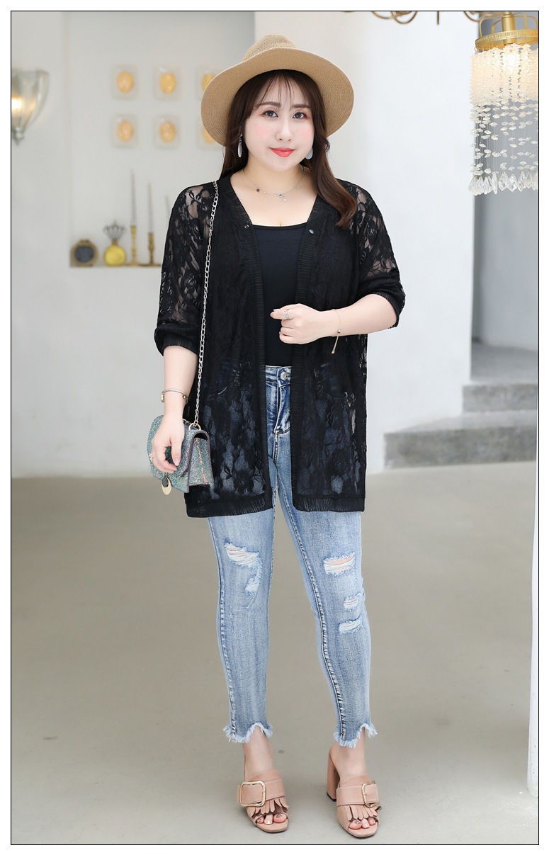 1905 кружева кардиган летняя куртка женщин 300 кг плюс размер черный и белый солнцезащитный крем шаль пухлые девушки плюс размер