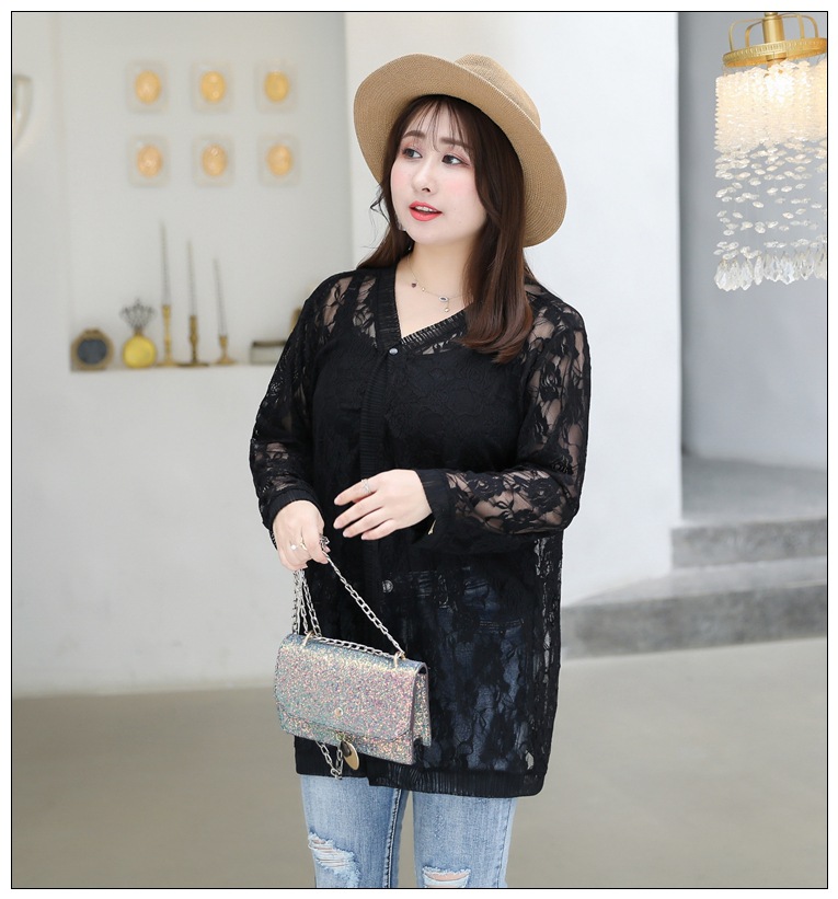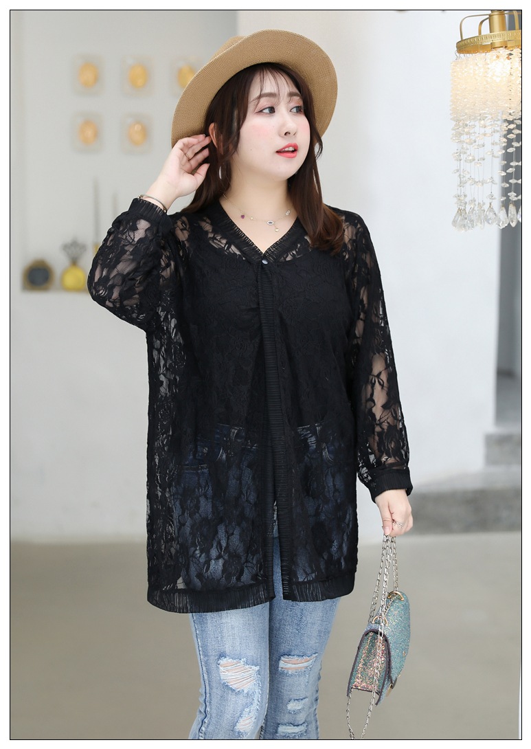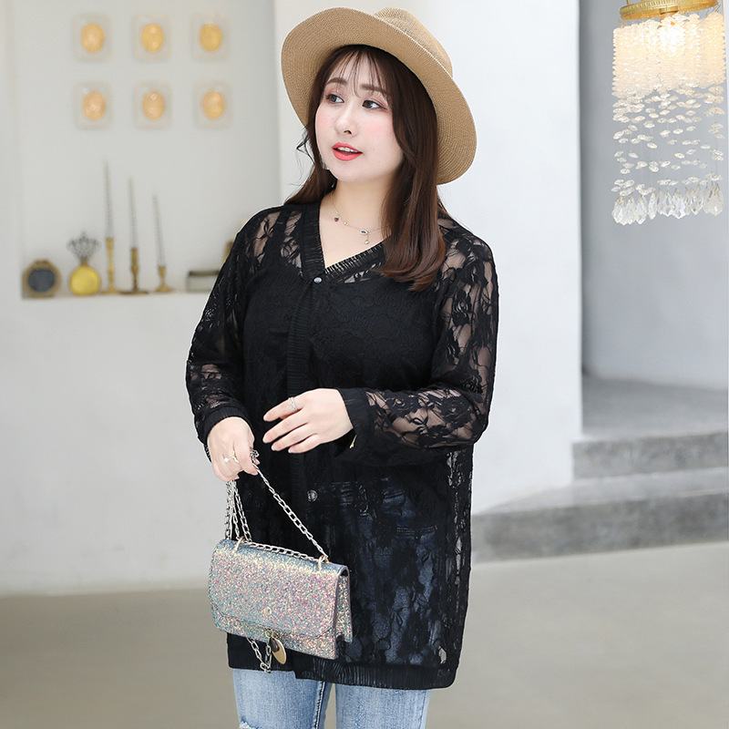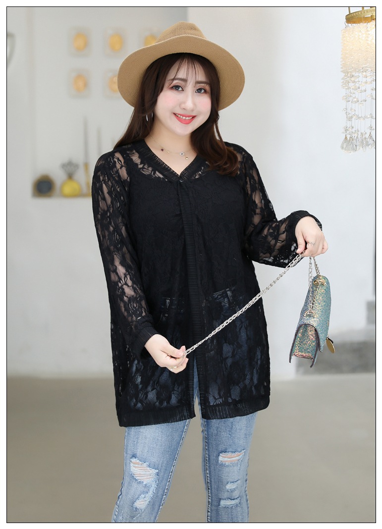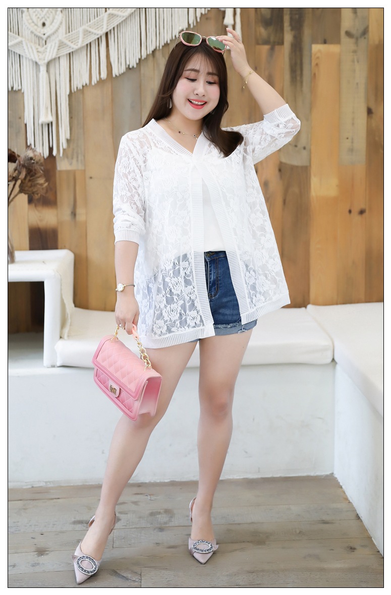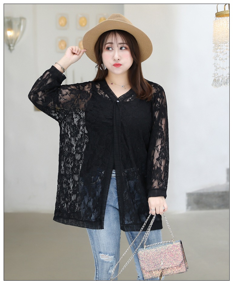 1905 кружева кардиган летняя куртка женщин 300 кг плюс размер черный и белый солнцезащитный крем шаль пухлые девушки плюс размер