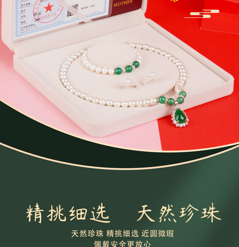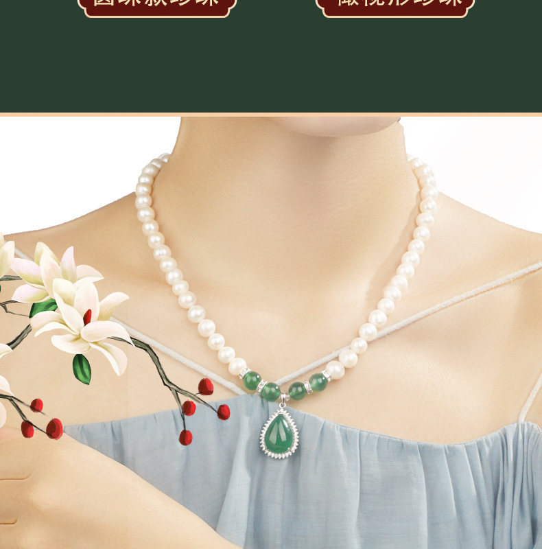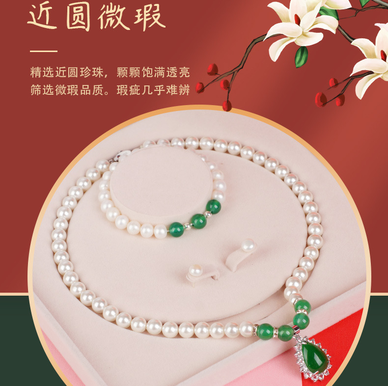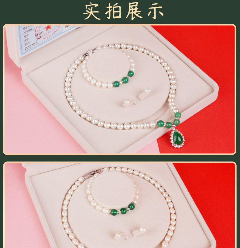 Подвеска из жемчуга и халцедона из трех костюмов 7-8 мм (с высококачественной подарочной коробкой); Подвеска из трех частей с жемчугом и халцедоном, бутик 7-8 мм (с высококачественной подарочной коробкой)
