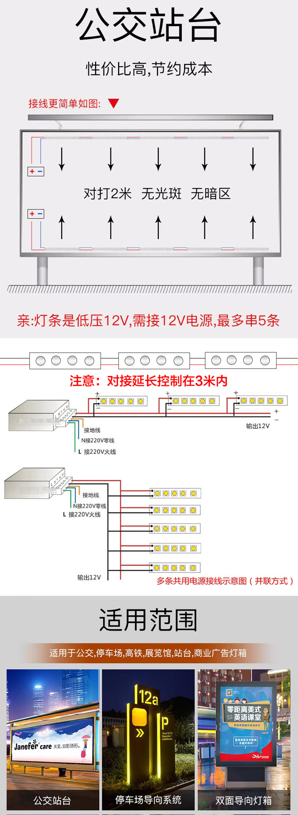 3030 боковой источник света световая полоса двухсторонний световой короб Светодиодная световая полоса диффузного отражения 12 В автобусная станция рекламный световой короб для освещения