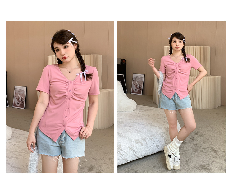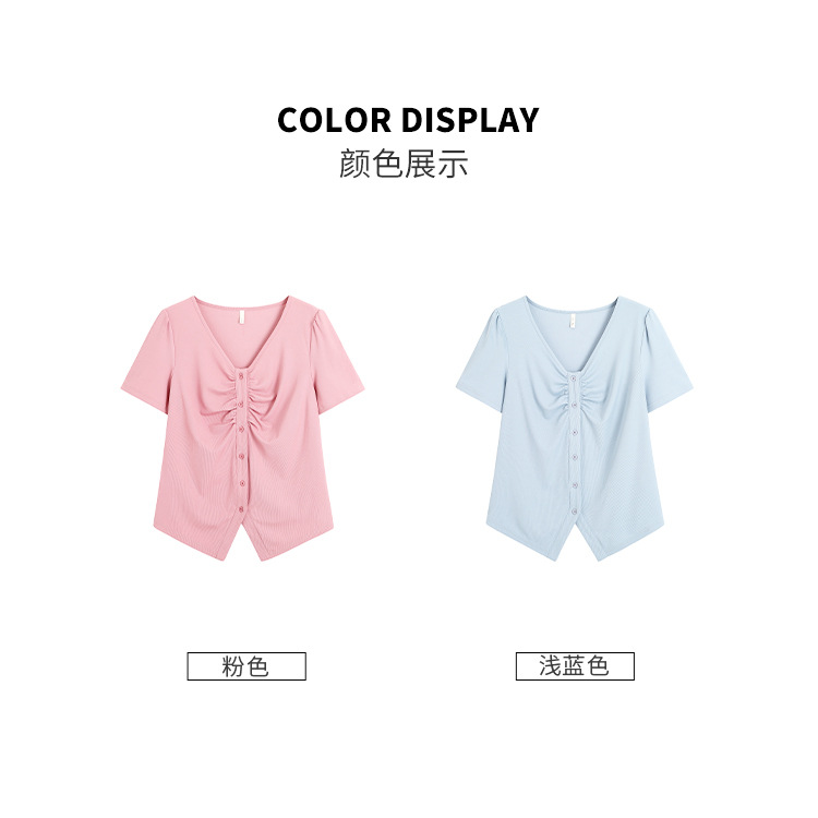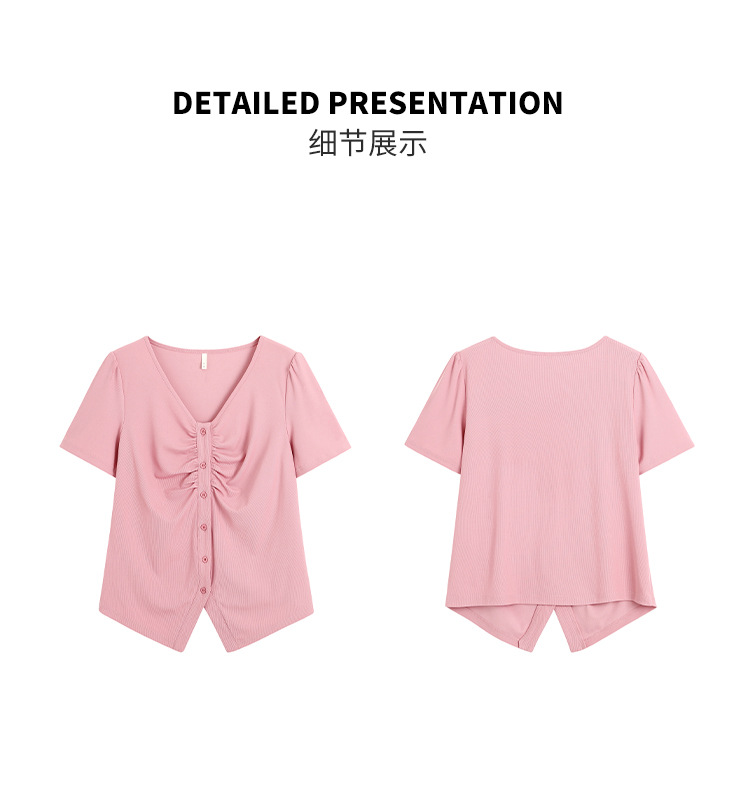Женская футболка больших размеров с короткими рукавами, милый и горячий стиль, с короткими рукавами, с V-образным вырезом, асимметричный дизайн, топ для похудения 62402