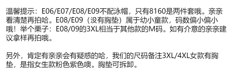 E06 Синий астронавт; E06 Озеро Синий Крокодил; E06 Розовый эльф; E06 Фиолетовая русалка; 8160 Розовый [с шапочкой для плавания]; 8160 синий [с шапочкой]; Маленькие дети с короткими рукавами E08; Маленькие дети с длинными рукавами E09; 311 маленьких детей с короткими рукавами; 312 маленьких детей с длинными рукавами; 04-2 Маленькие дети маленькие