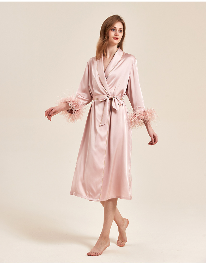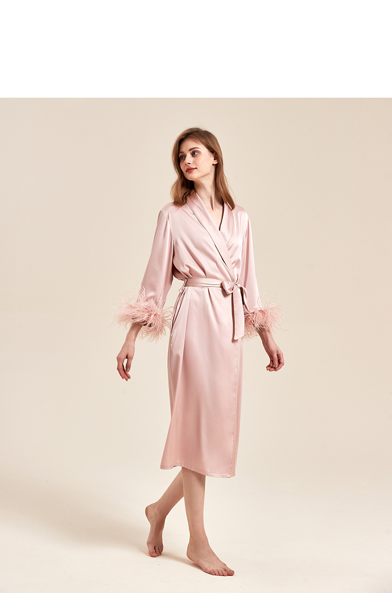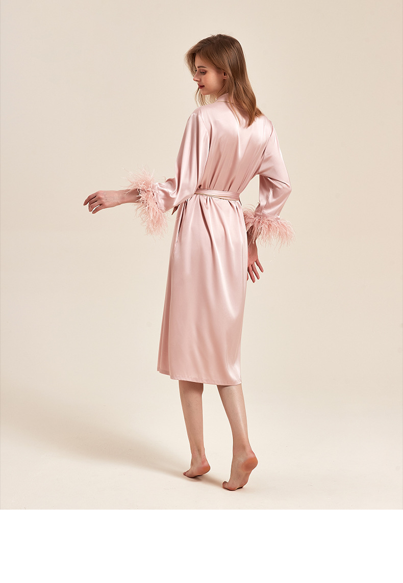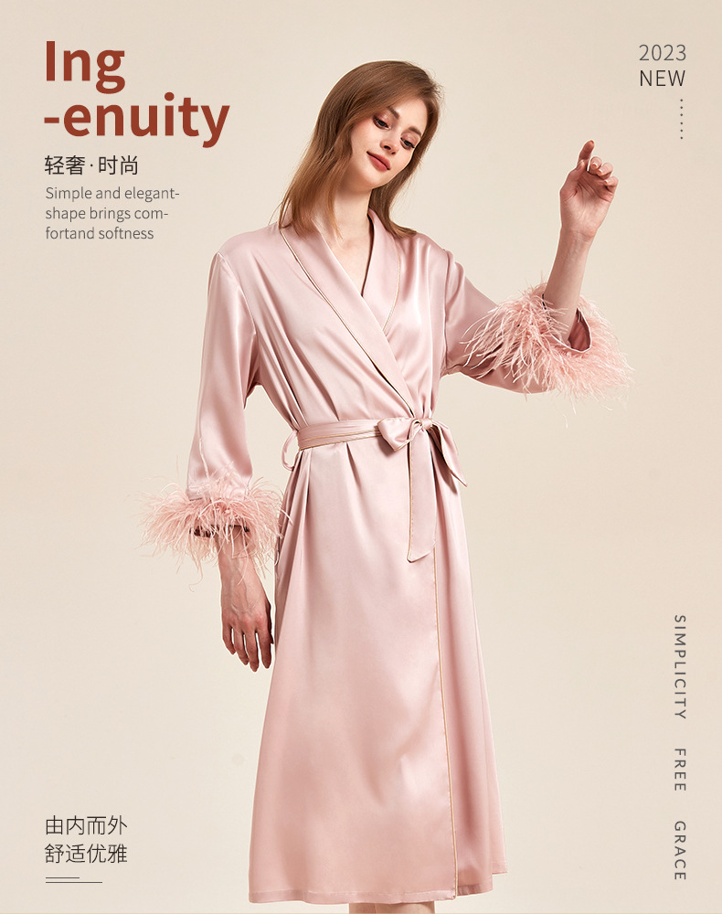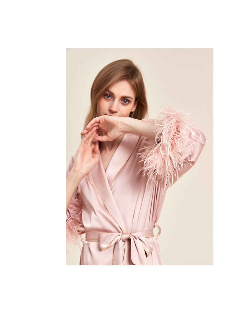 Пижама Paymon Girl женская осень новый свадебный стиль невесты ледяной шелк атласные манжеты перья украшения свадебный халат