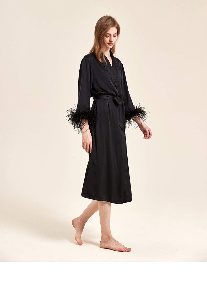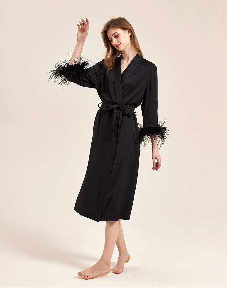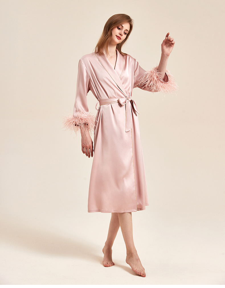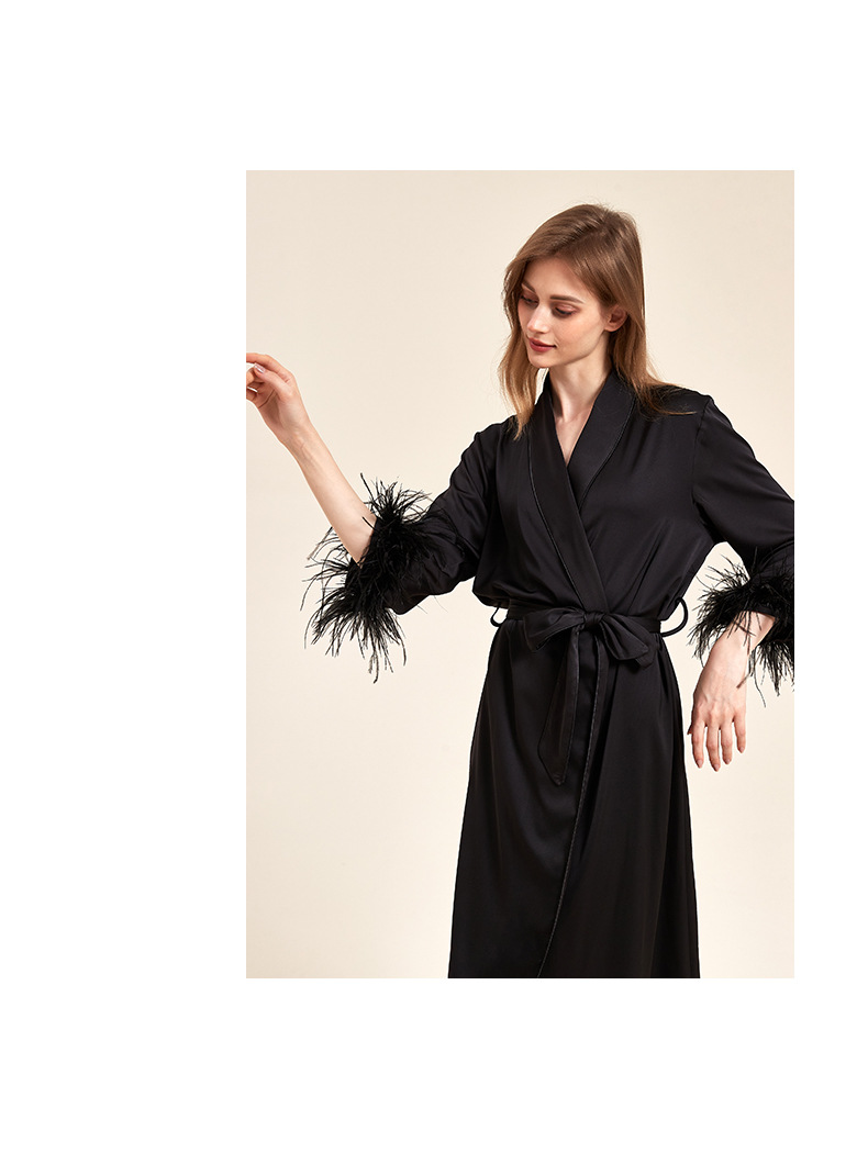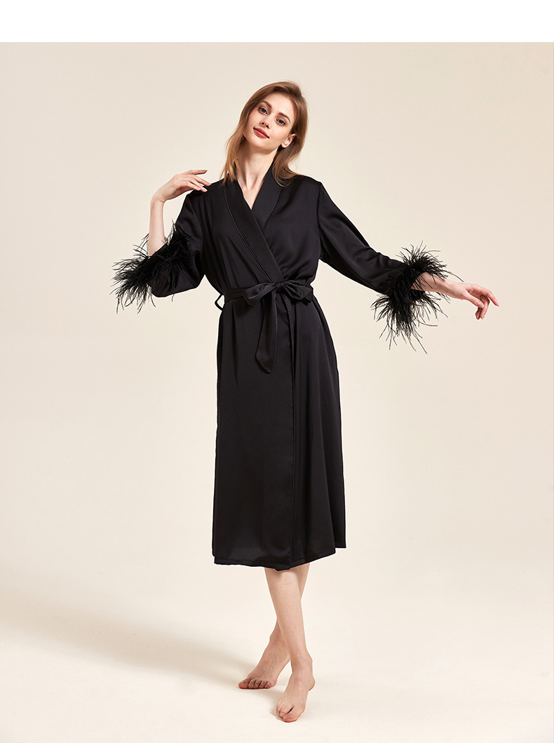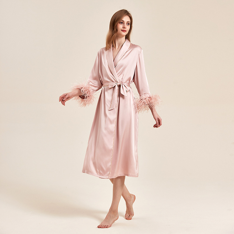 Пижама Paymon Girl женская осень новый свадебный стиль невесты ледяной шелк атласные манжеты перья украшения свадебный халат