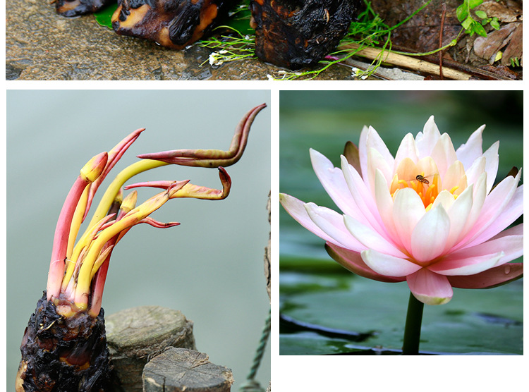 Крупные клубни лотоса, гидропонные растения лотоса, цветы лотоса, стебли лотоса с бутонами, гидропонные цветы