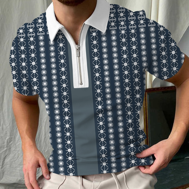 Трансграничная 3D-печать рубашка-поло на молнии 3D цифровая печать с коротким рукавом Свободный европейский размер быстросохнущие лацканы гусиная лапка