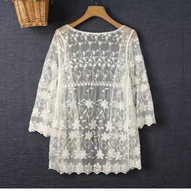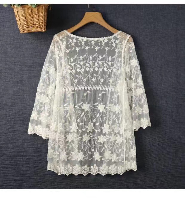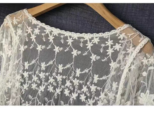 Кардиган короткий солнцезащитный крем Женская Вышивка ажурная пляжная одежда с длинным рукавом Солнцезащитная рубашка женская куртка