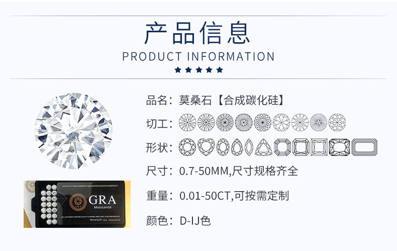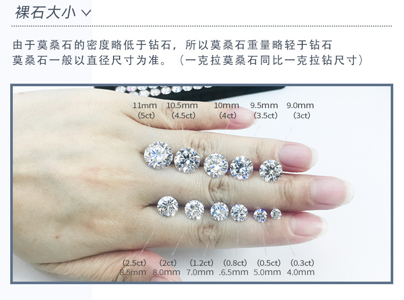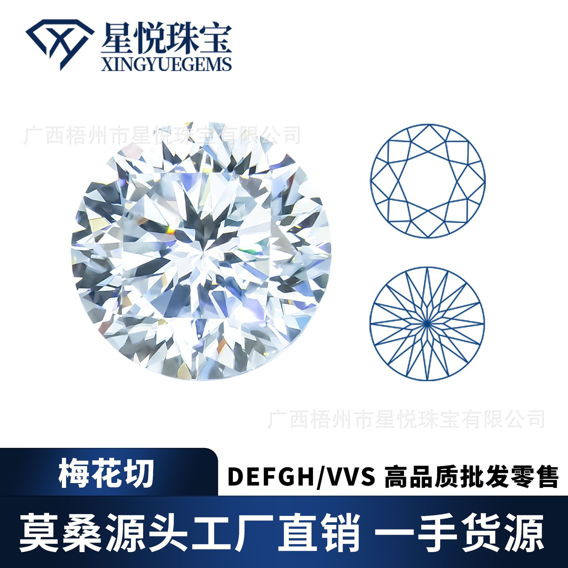 Ювелирные изделия фабрики Учжоу Xingyue 1 карат Круглый Мосан голый камень DEF цветок сливы вырезать ювелирные изделия Главный камень с GRA размер талии