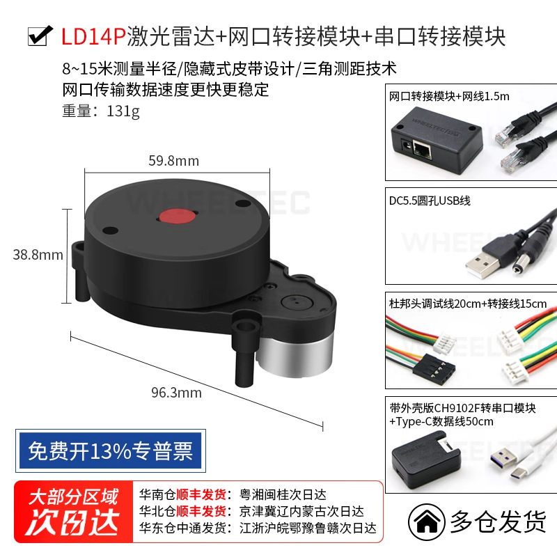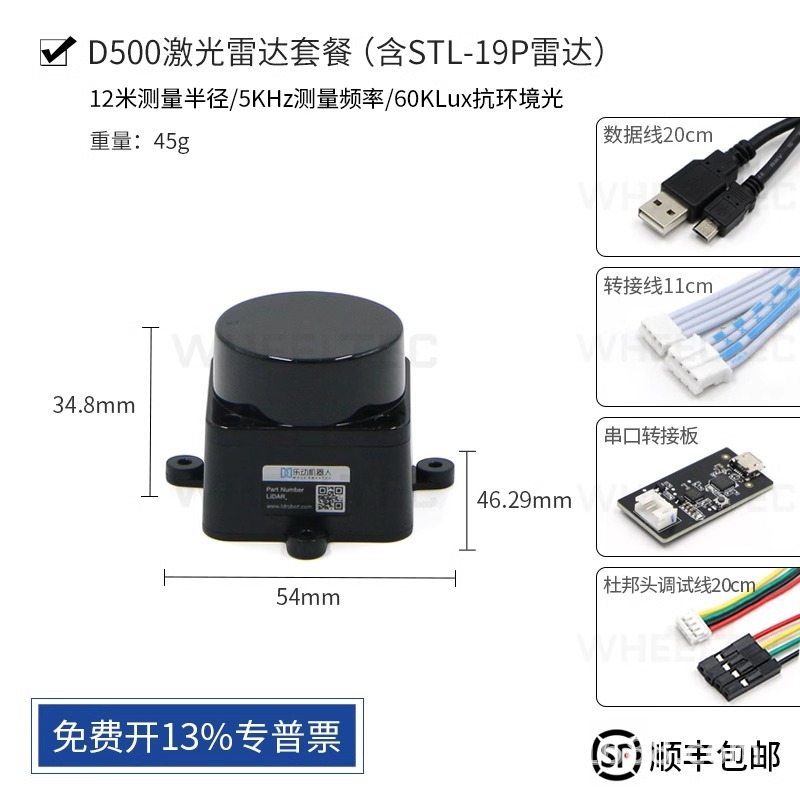 Лидар LeDong D500 DTOF для измерения расстояний, SLAM-навигации и картографирования в помещении и на улице, 360° ° STL-19P LD14P