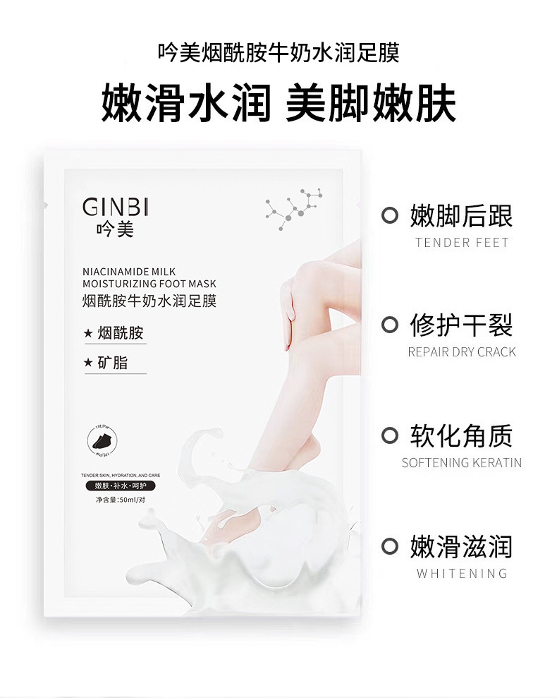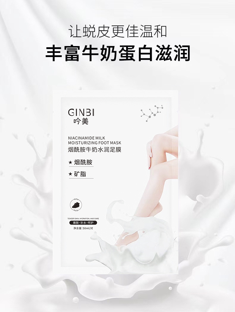 Маска для ног Yinmei Milk: отшелушивающая, удаляющая омертвевшую кожу и мозоли, с ниацинамидом и молочной кислотой, из козьего молока. Оптовая продажа, хит продаж.