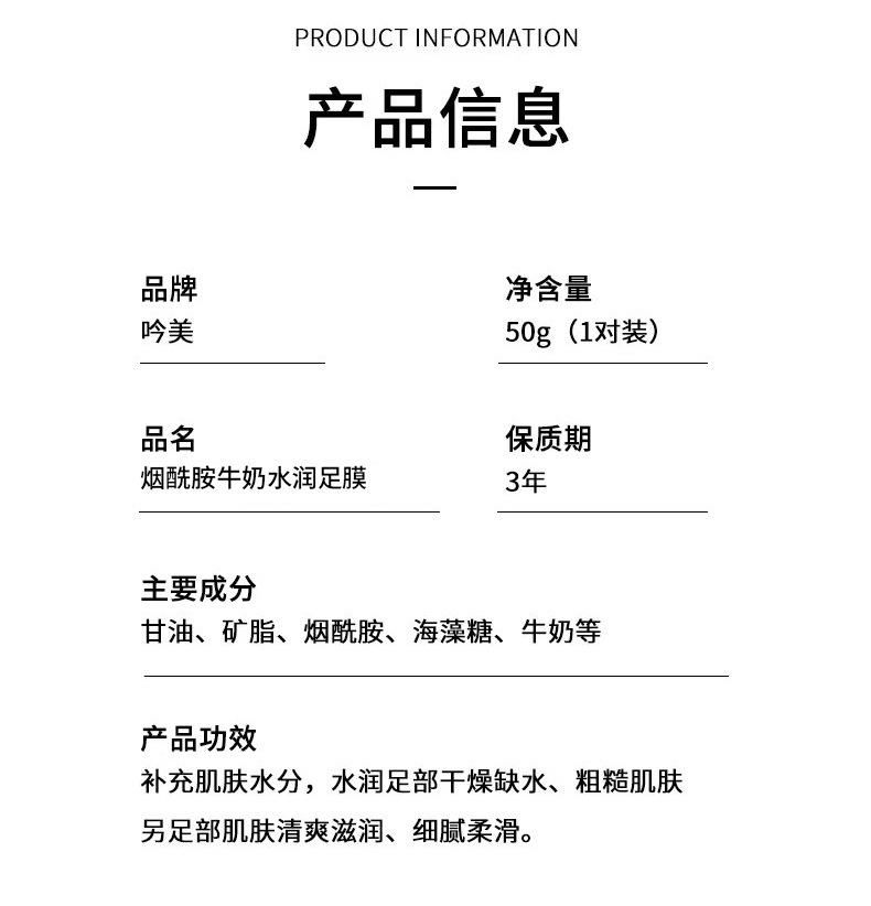 Увлажняющая маска для ног с молоком Yinmei, 50 г [пара]