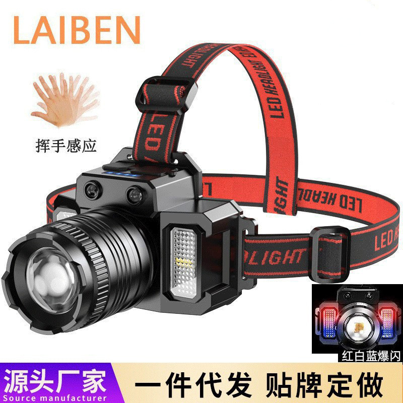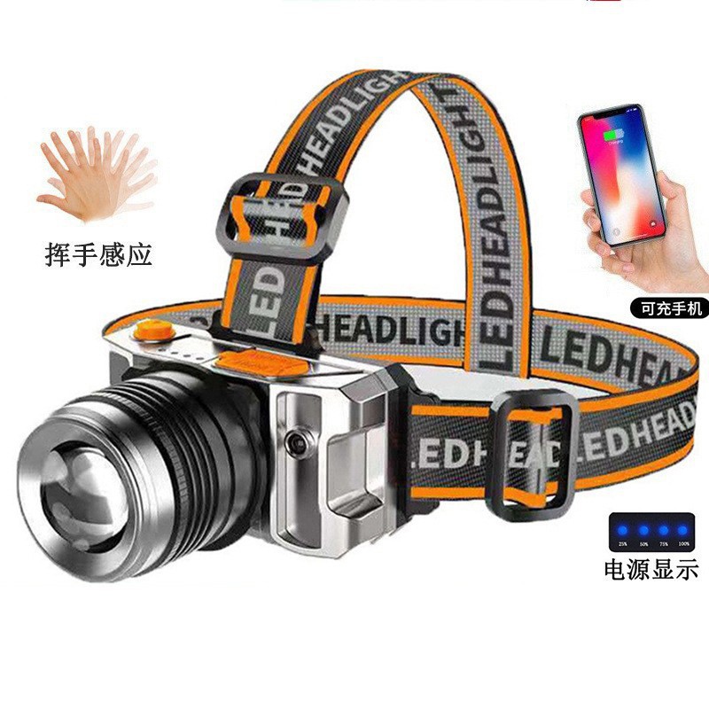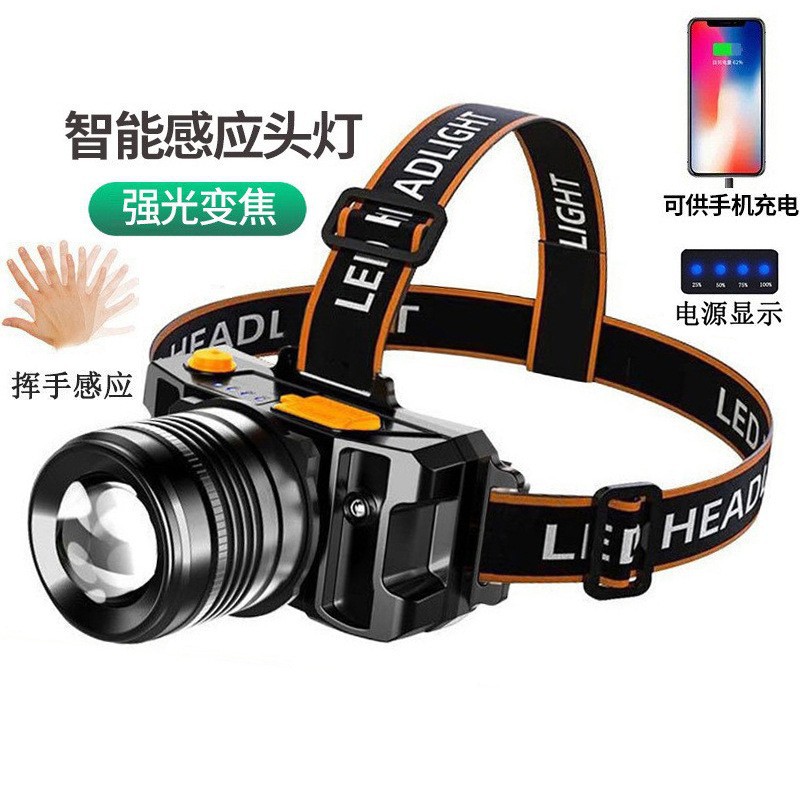 Трансграничная интеллектуальная сенсорная фара, мощная уличная налобная фара P50, сильный свет, долговечный электрический дисплей, фонарь для рыбалки