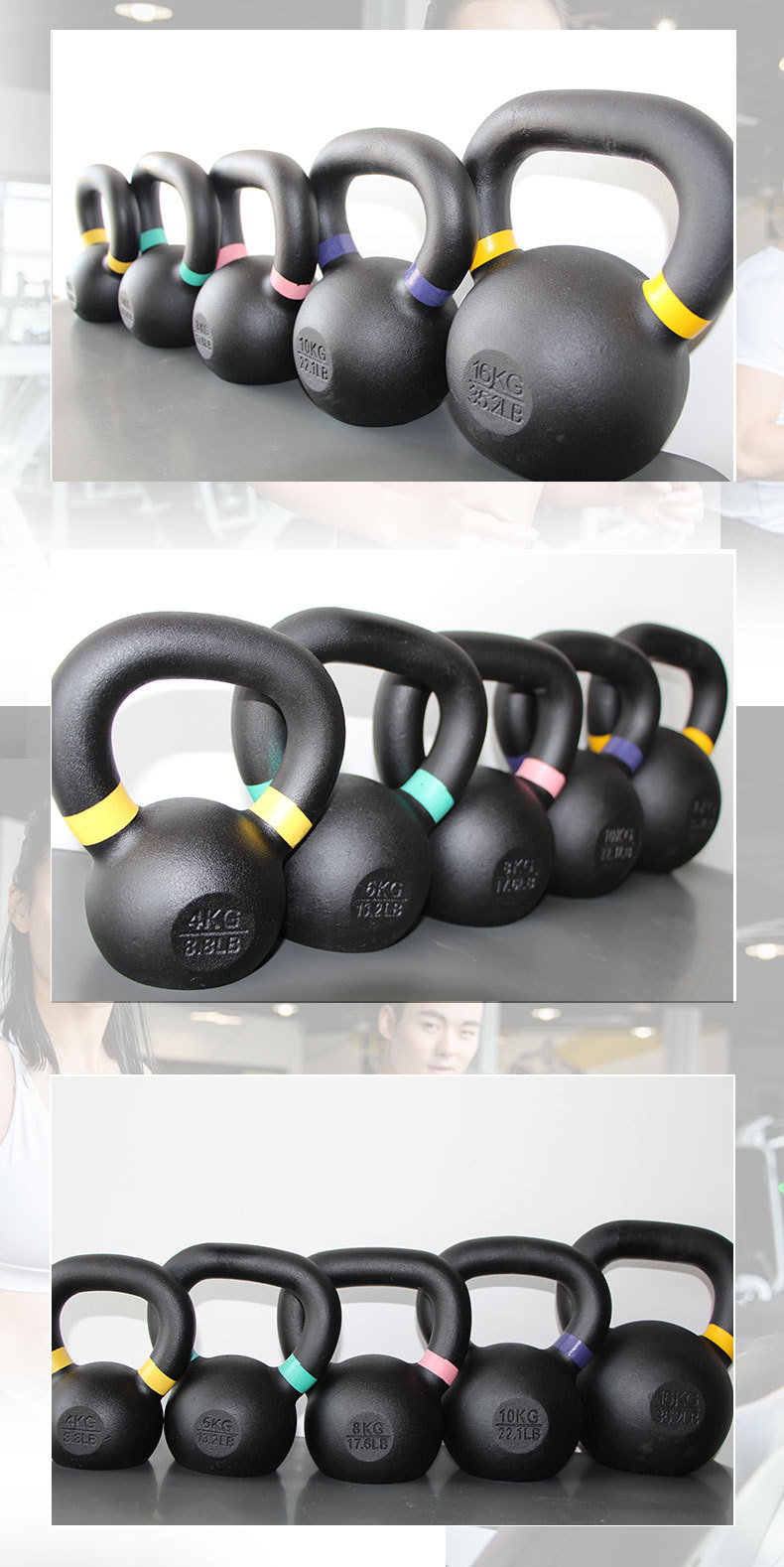 Высококачественная чугунная гиря (4-108 кг) с цветным покрытием для домашнего и коммерческого использования.