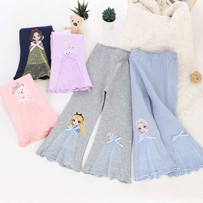2023 весеннее платье для девочек расклешенные брюки весной и осенью новые детские штаны снаружи одеты иностранные штаны маленькая девочка дикие брюки прилив
