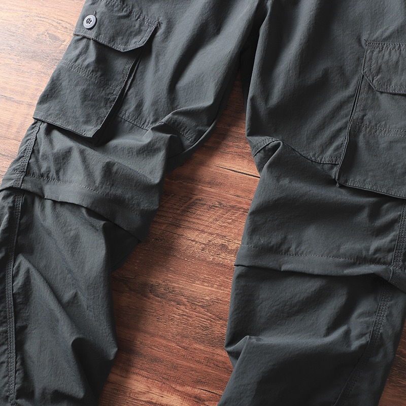 Цельные брюки, быстросохнущие брюки для двух видов улицы, мужские свободные прямые брюки-карго, летние функциональные съемные эластичные штурмовые брюки.