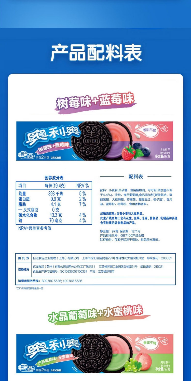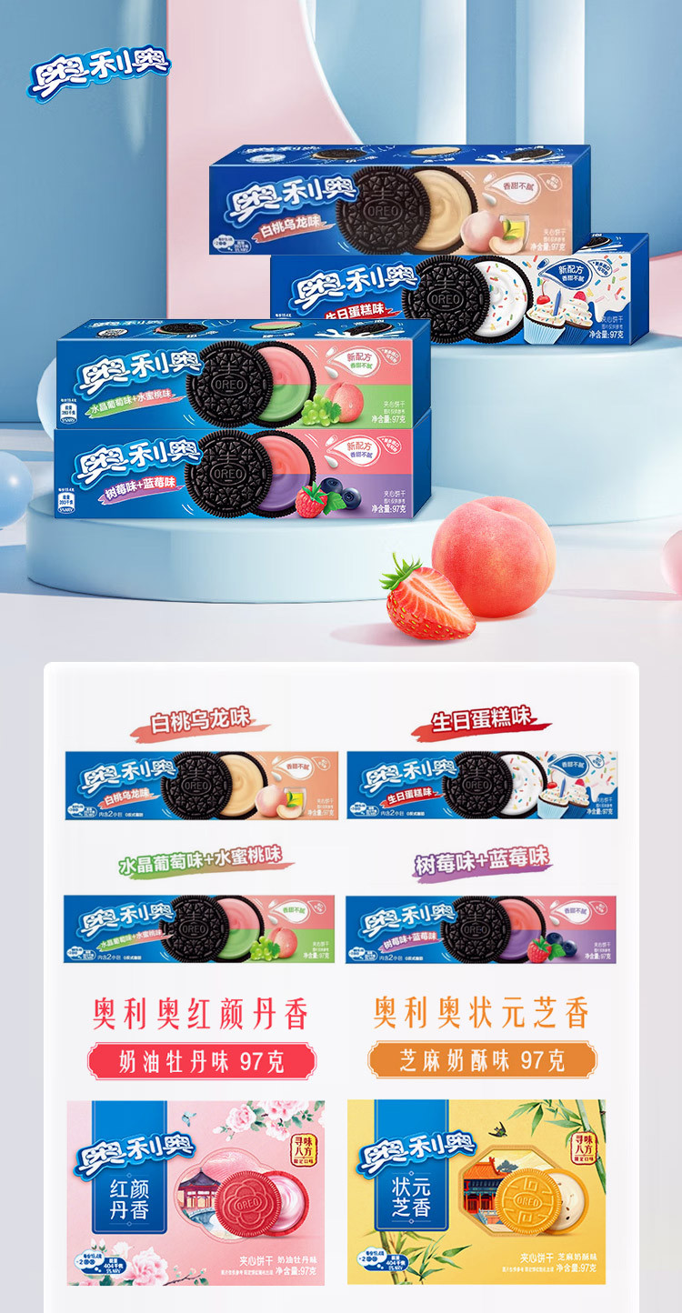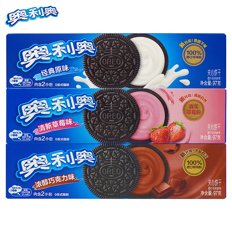 Оптовая продажа печенья Oreo со вкусом малины и черники, набор для перекуса, печенье-сэндвич в коробке, 97 г