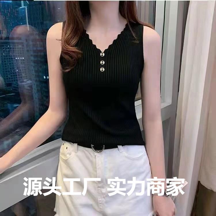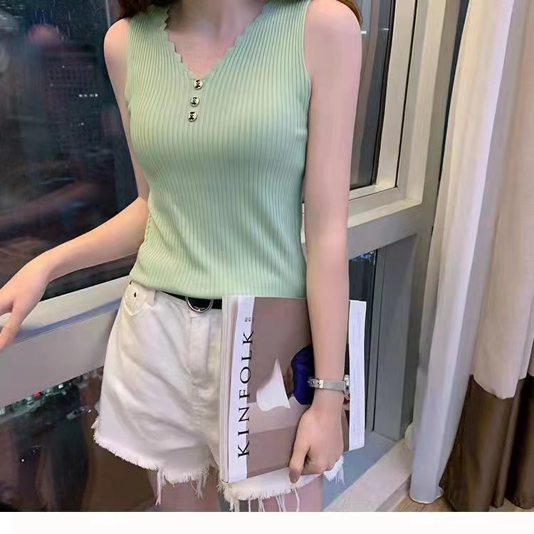 Жилет без рукавов из ледяного шелка, женская летняя верхняя одежда, свободная короткая вязаная Базовая рубашка в Корейском стиле с V-образным вырезом