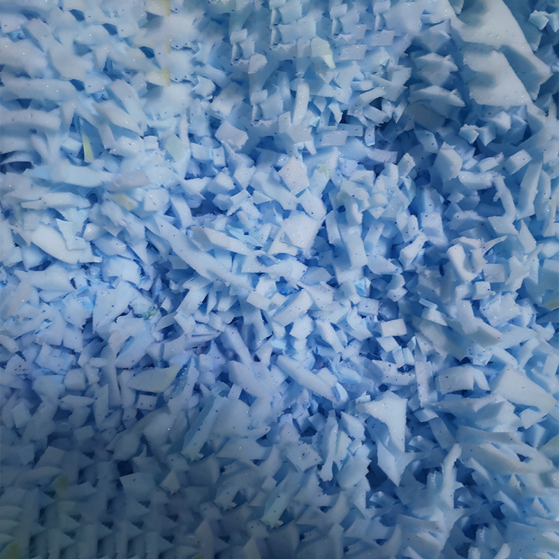 Гель-дробленый спонж, наполненный синими измельченными очистками из пены с эффектом памяти, наполненными частицами геля, пеной с эффектом памяти с медленным отскоком.