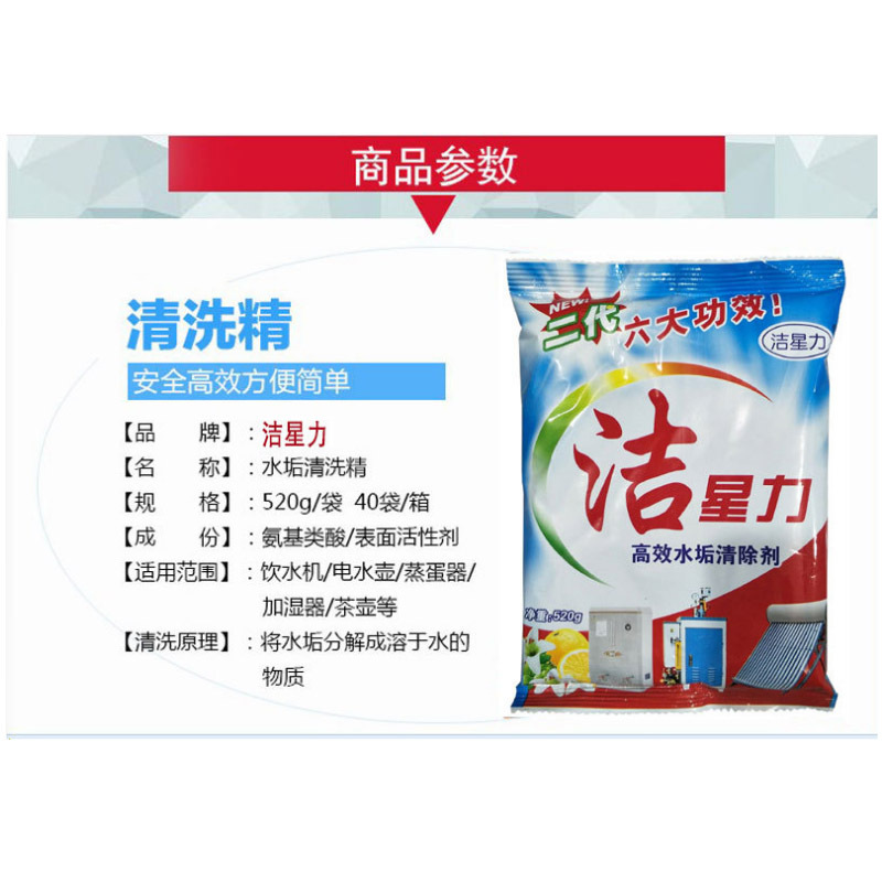 品名:520克水垢清洁剂*40包/箱。少了发快递,多了发物流,免费开普票。