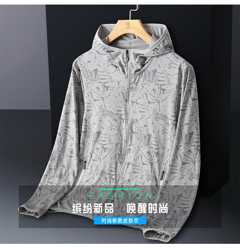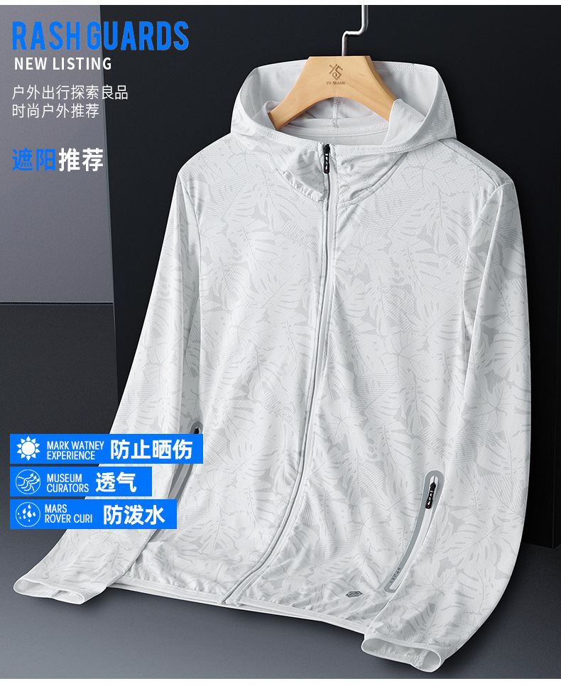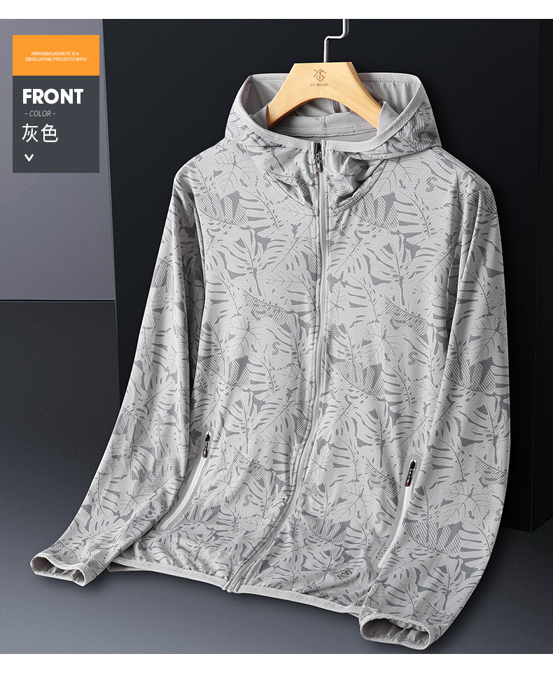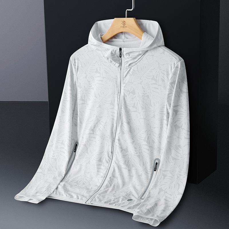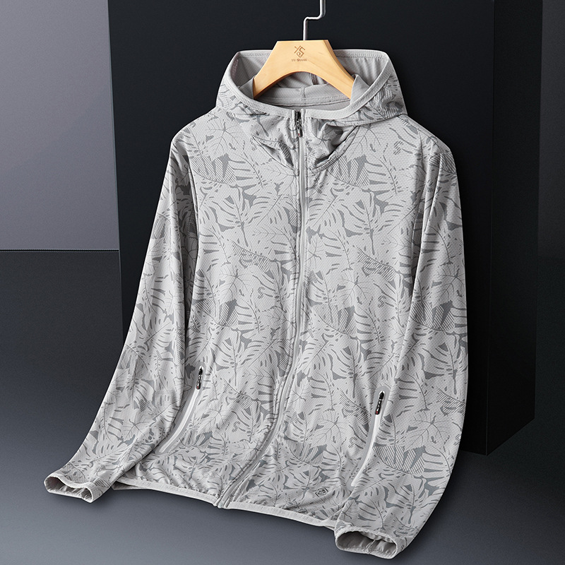 Солнцезащитная одежда для мужчин, из ледяного шелка, UPF50+, защита от ультрафиолета, тонкая, дышащая, для активного отдыха, солнцезащитная ветровка с принтом кленового листа, мужской солнцезащитный костюм