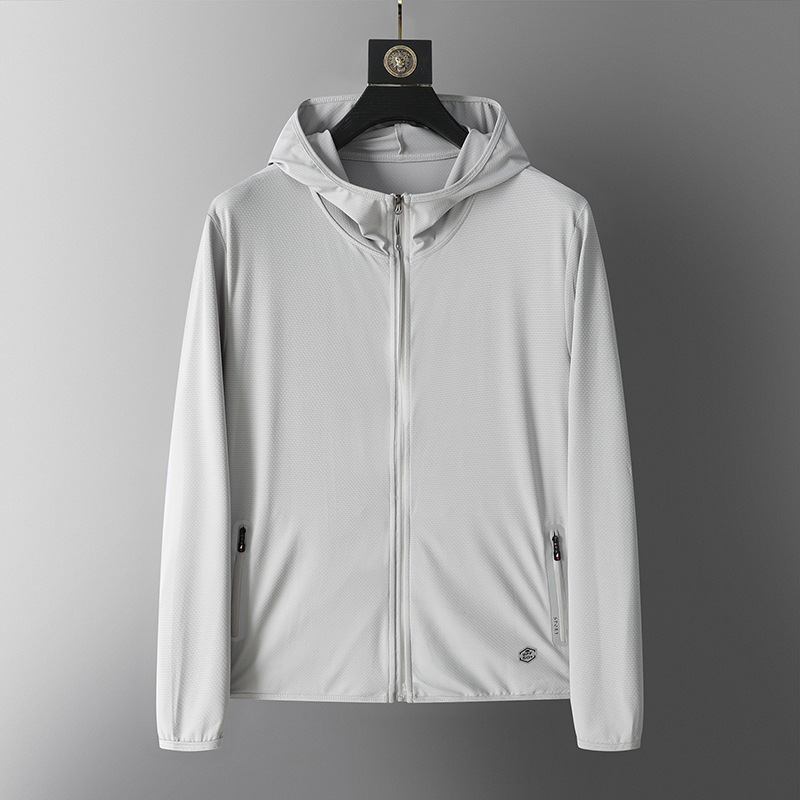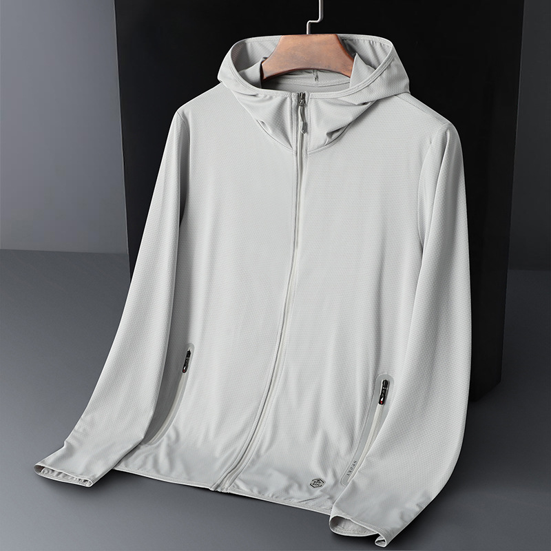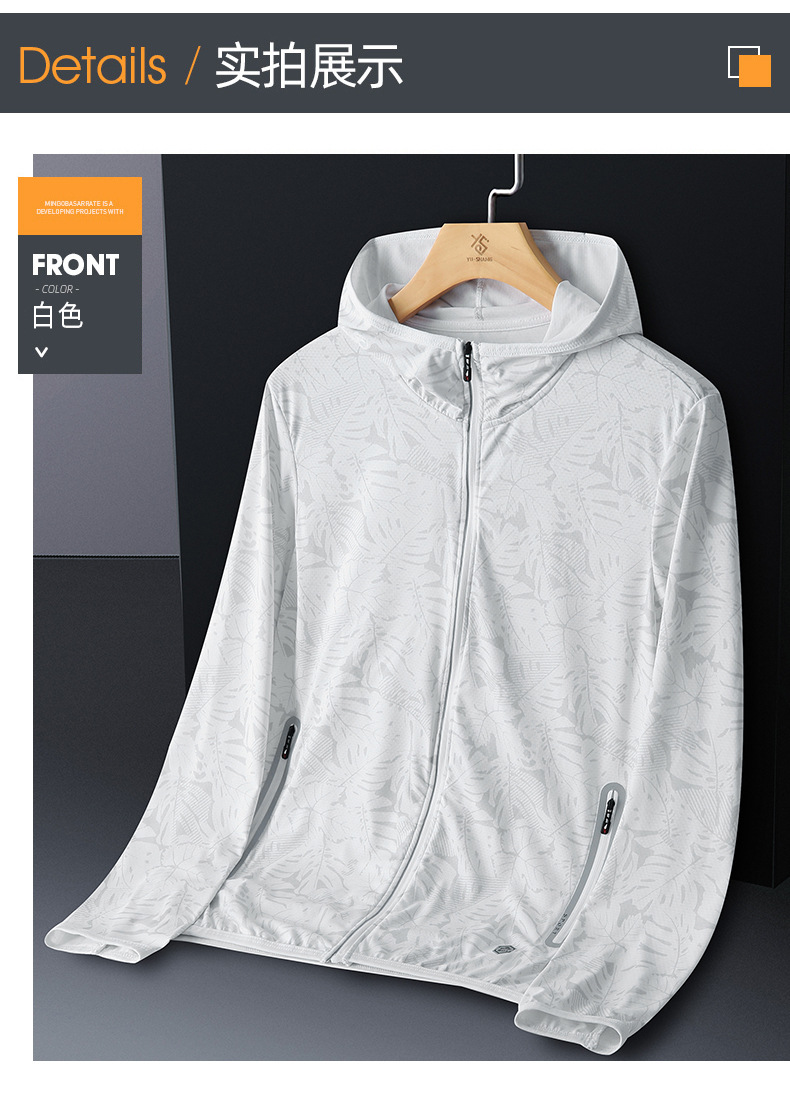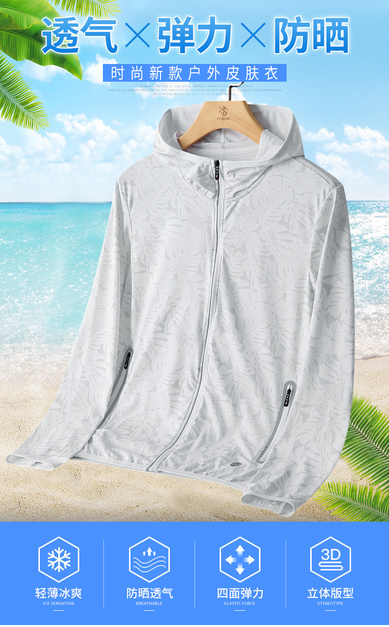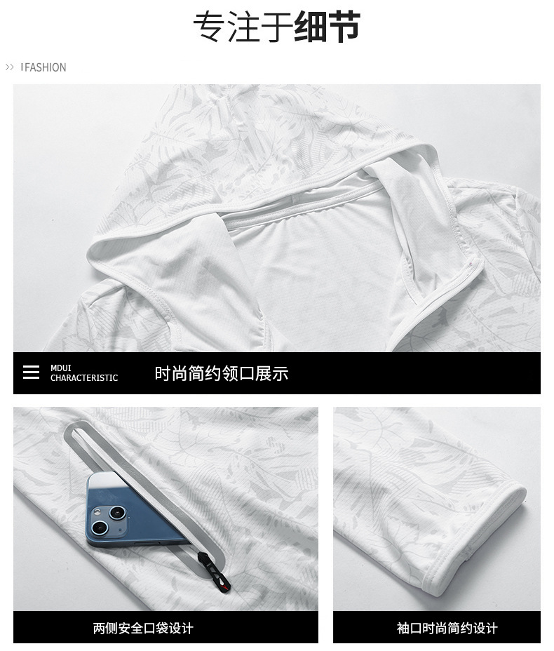 Солнцезащитная одежда для мужчин, из ледяного шелка, UPF50+, защита от ультрафиолета, тонкая, дышащая, для активного отдыха, солнцезащитная ветровка с принтом кленового листа, мужской солнцезащитный костюм