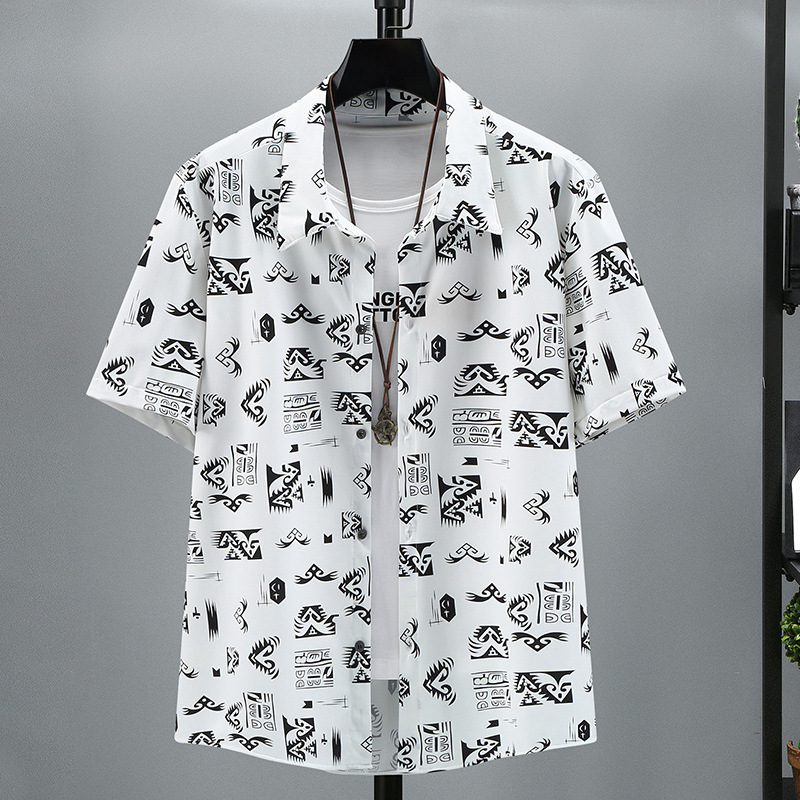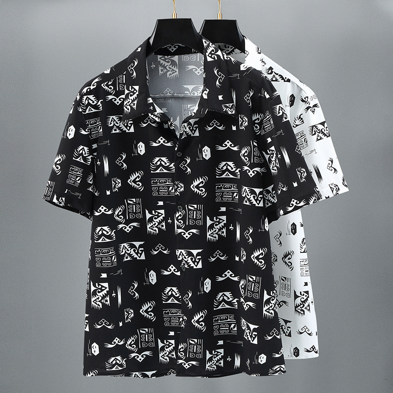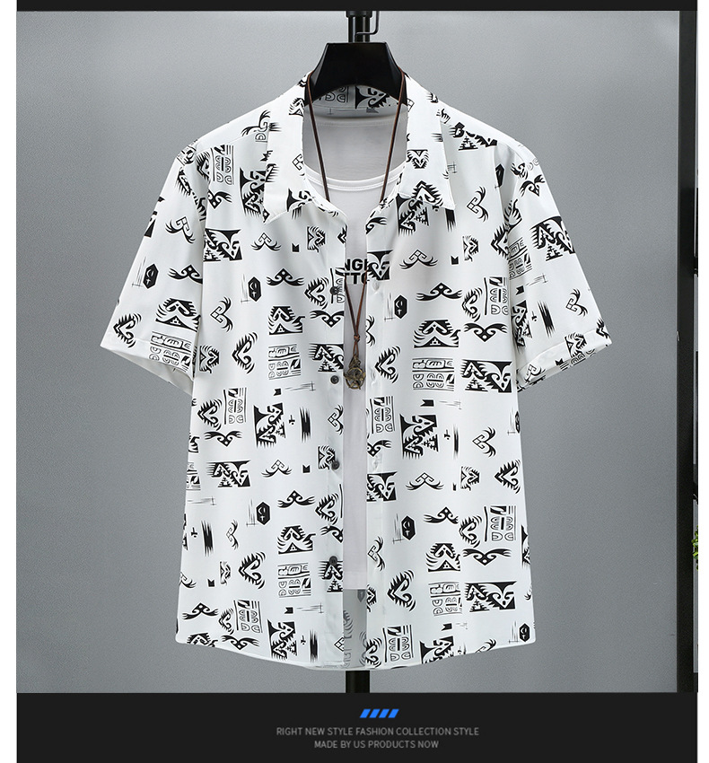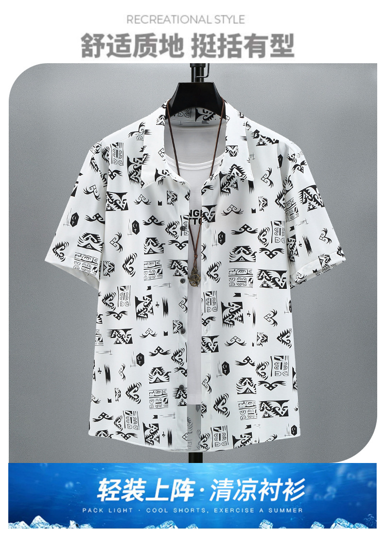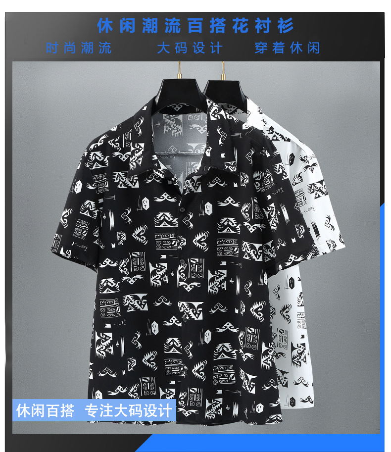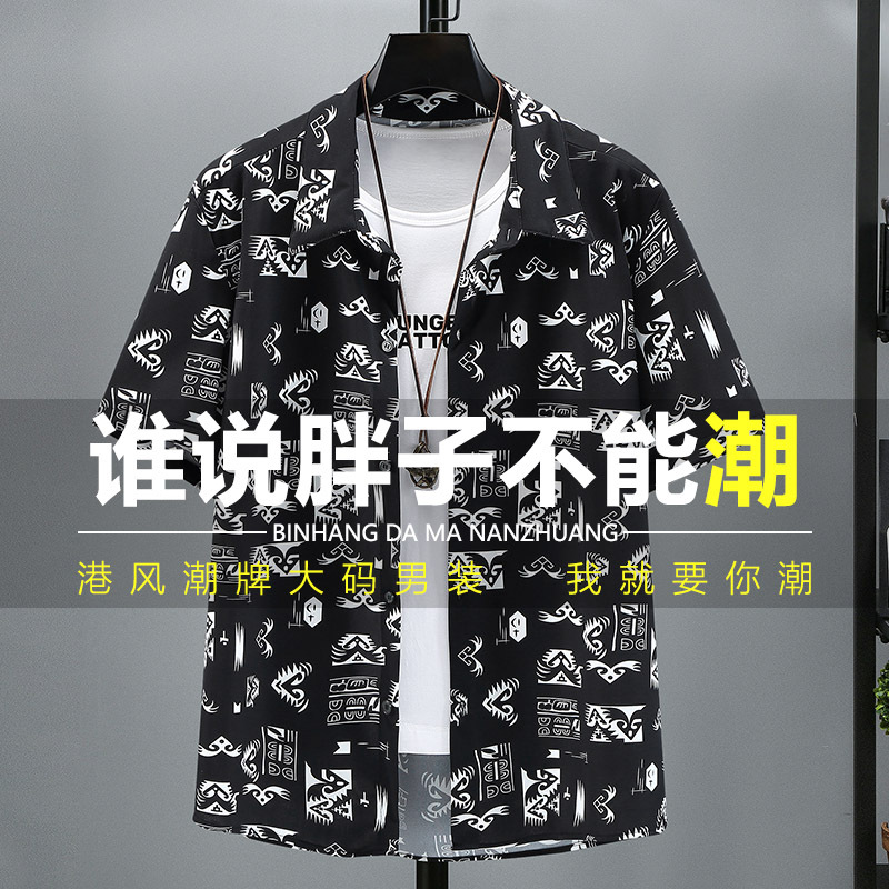 Летняя новая быстросохнущая брендовая мужская рубашка Ice Silk Tide больших размеров с коротким рукавом и увеличением жира толстый человек толстый мужчина с коротким рукавом 2361