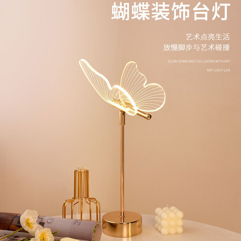 Легкая роскошная и простая акриловая креативная декоративная атмосферная лампа, настольная лампа-бабочка с регулируемой яркостью, прикроватный ночник для спальни девочки