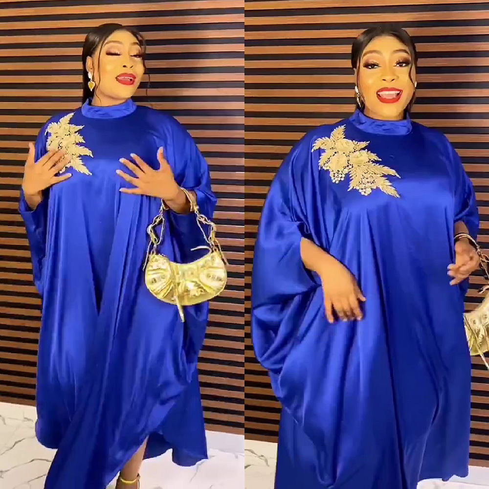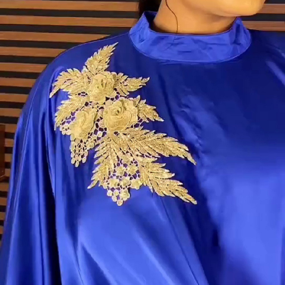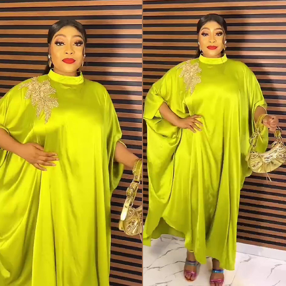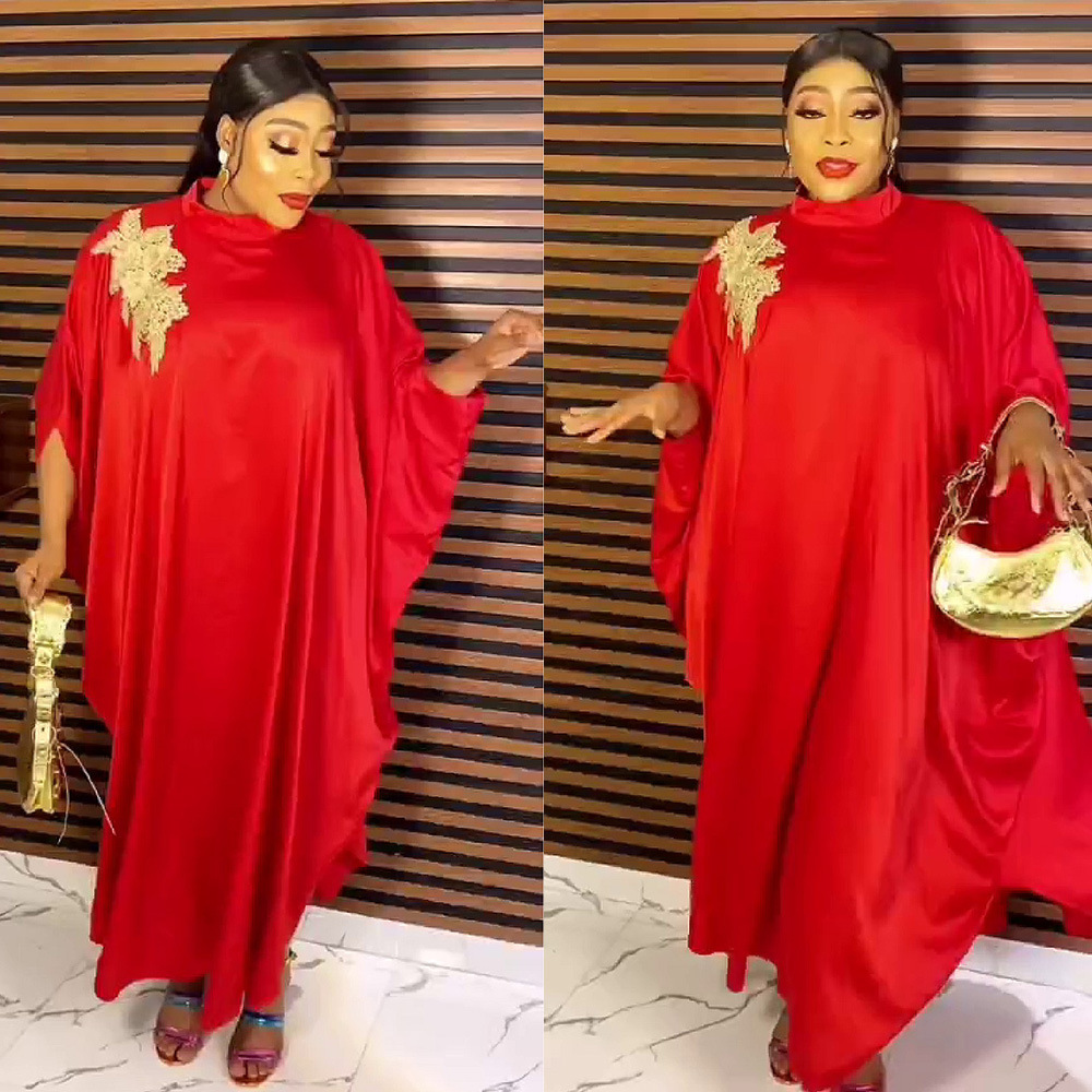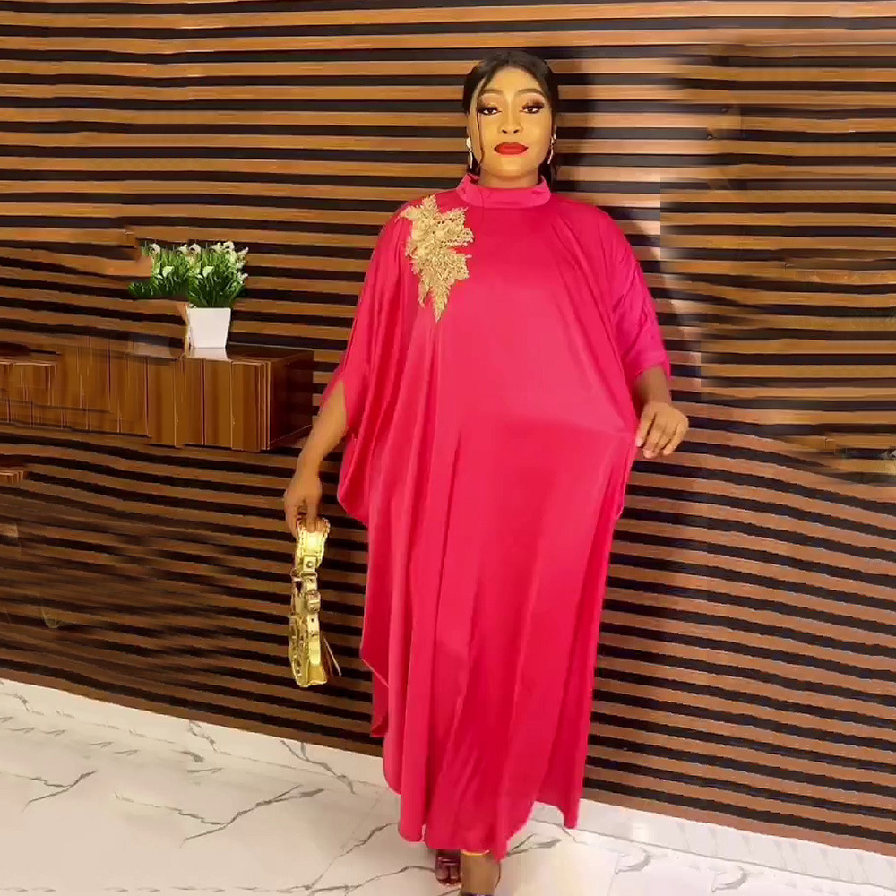 Африканский этнический стиль женщин платье район большой платье с отворотом воротник летучая Мата рукав с бриллиантом деколь большое платье