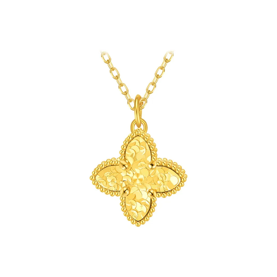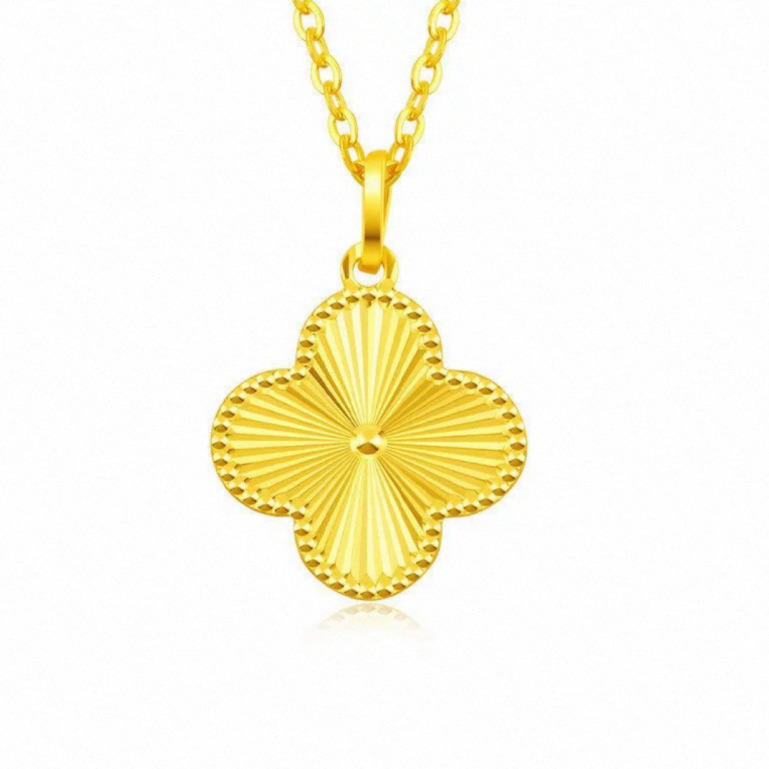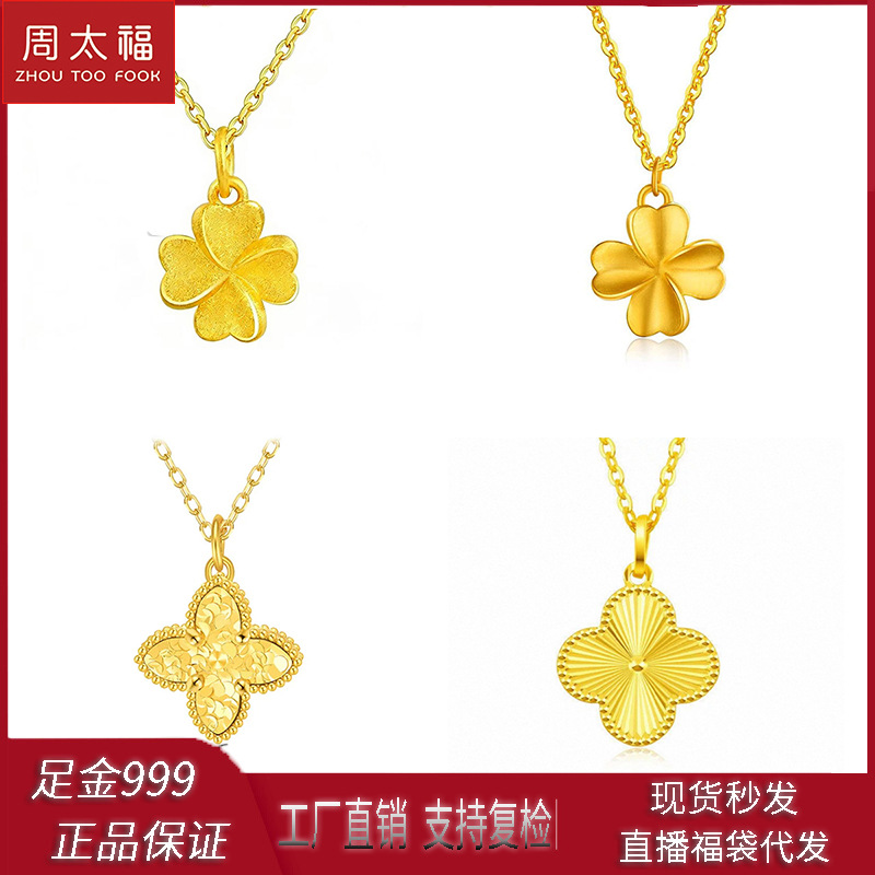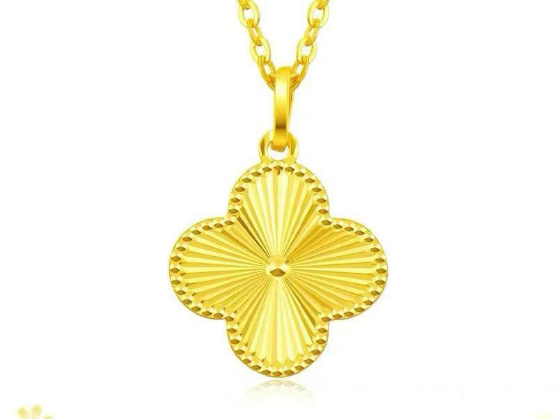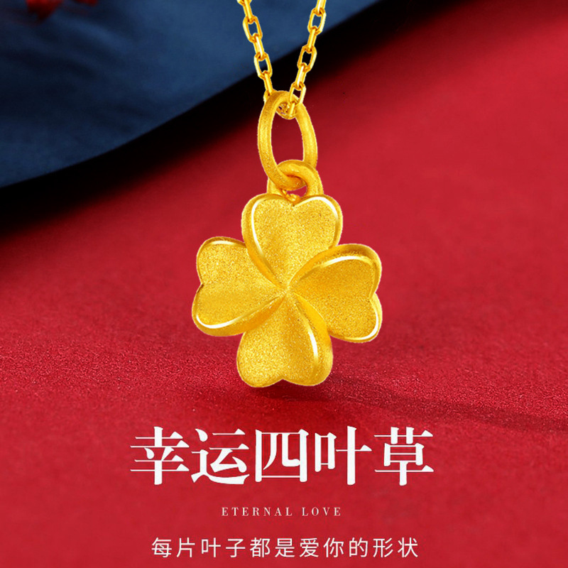 Оптовая продажа: Золотой кулон-четырехлистник для женщин, 24K, 3D, из твердого золота, цепочка на ключицу, рекламный подарок, ожерелье из чистого золота 999 пробы