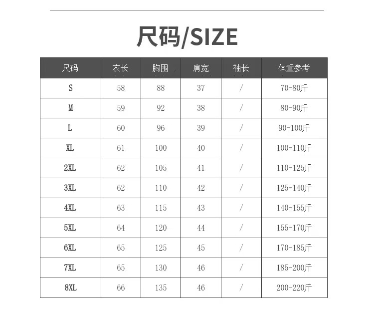 S; M; L; XL; 2XL; 3XL; 4XL; 5XL; 6XL; 7XL; 8XL