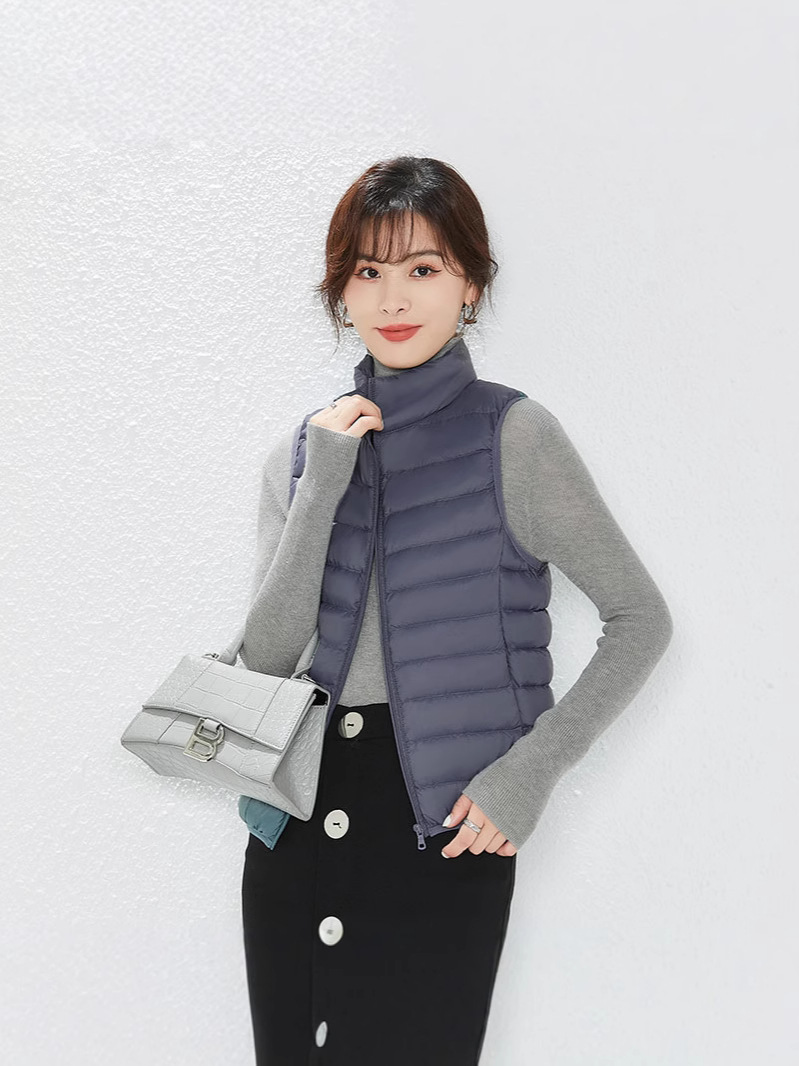 Новая легкая пуховая куртка TikTok для женщин, осень-зима, повседневный жилет, модный жилет с воротником-стойкой