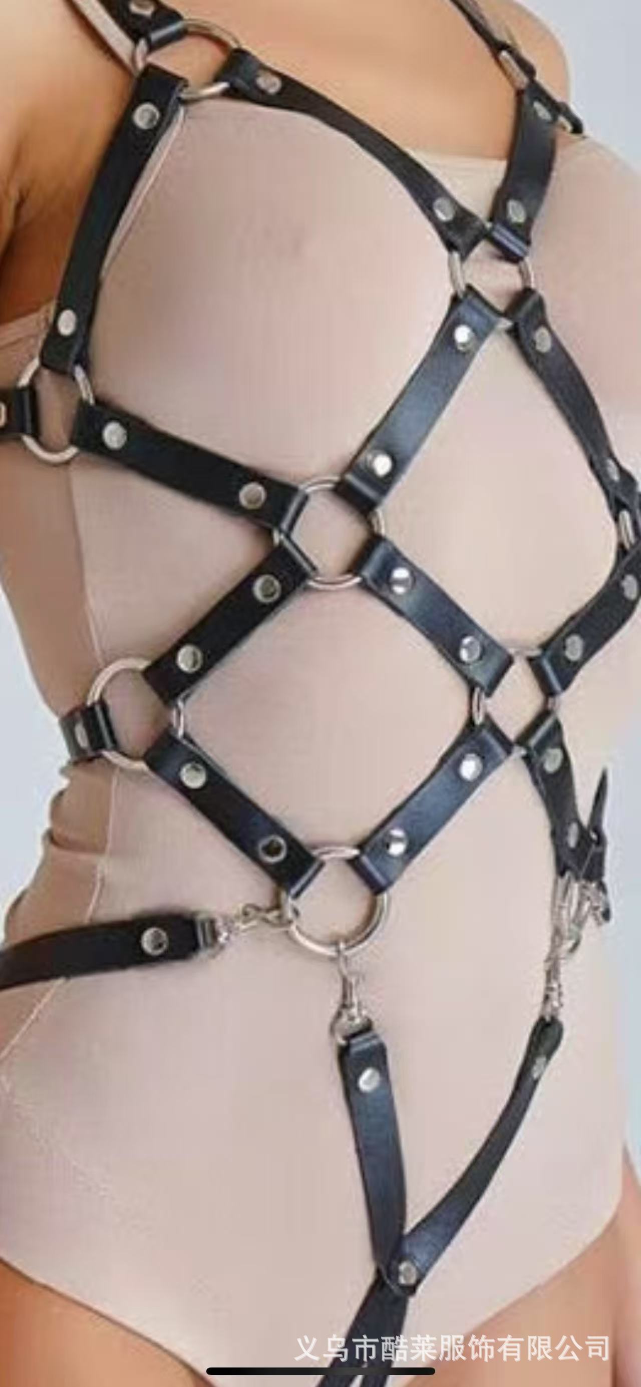pu皮革欧标环保材质;双层面料;柔软舒适;边油处理;更加美观;;长度可以调节;专业生产情趣皮革束缚衣服;镂空服饰;吊袜;吊带;服装配饰;厂家直销;实物拍摄;品质保证;量大从优;来图定做;束胸皮革衣服长期现货;