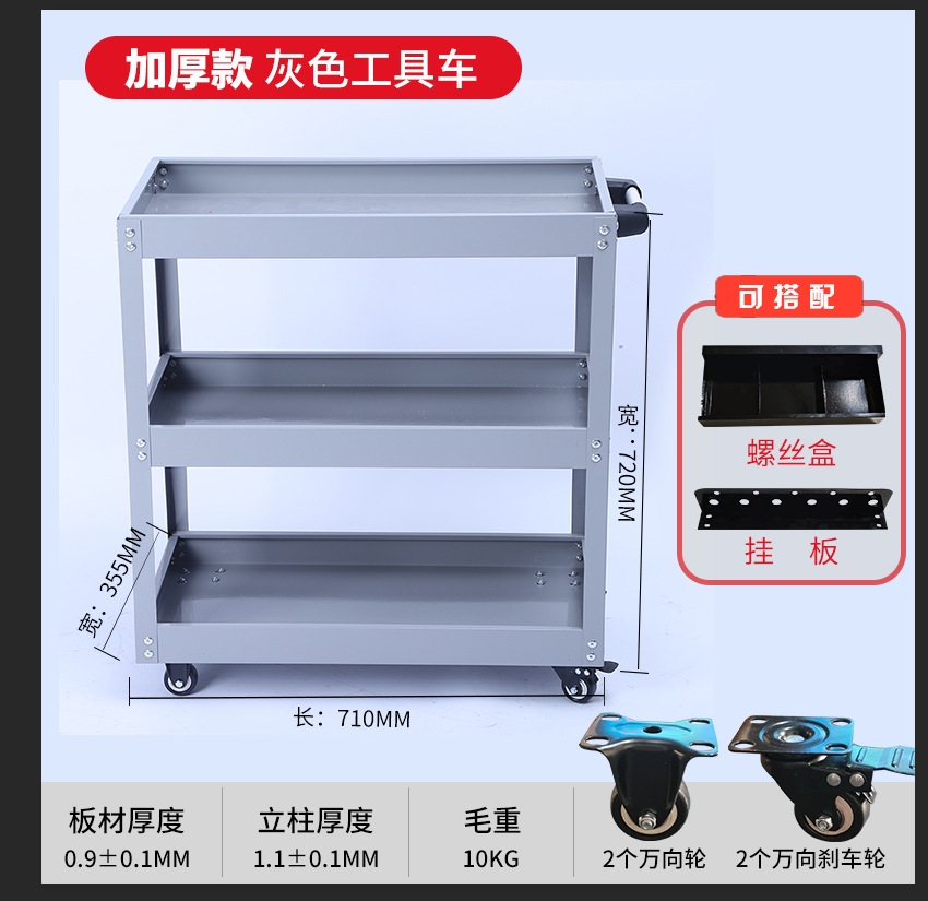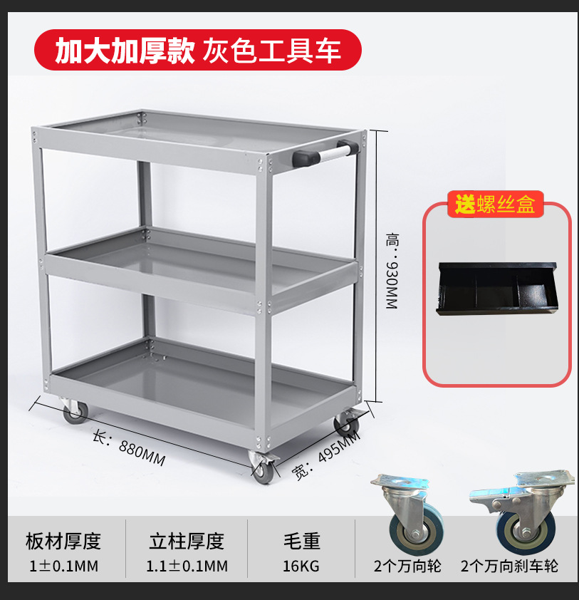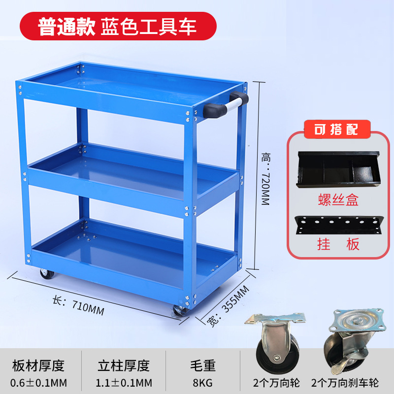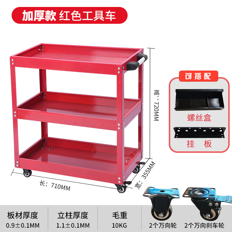 Тележка для инструментов для авторемонта, утолщенная мобильная тележка, тележка для инструментов для ремонта, тележка для деталей оборудования, шкаф для инструментов, трехслойная тележка для инструментов