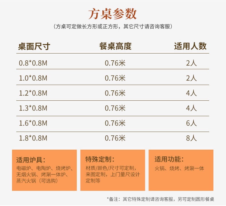 Квадратный стол 0,8* 0.8m (кроме стульев для плиты) каркас стола с порошковым покрытием по индивидуальному заказу; Квадратный стол 0,8* 0.8m (без стула-печки), каркас стола, гальваническая настройка; Квадратный стол размером 0,8- 1.8m по индивидуальному заказу; Квадратный стол рассчитан на 2-8 человек.; Размер круглого стола 1,3- 5m по индивидуальному заказу