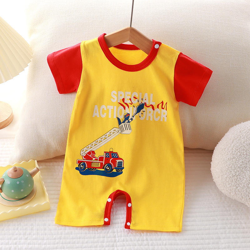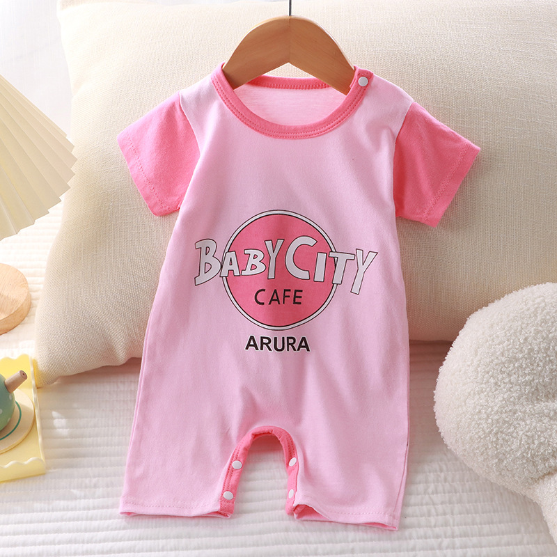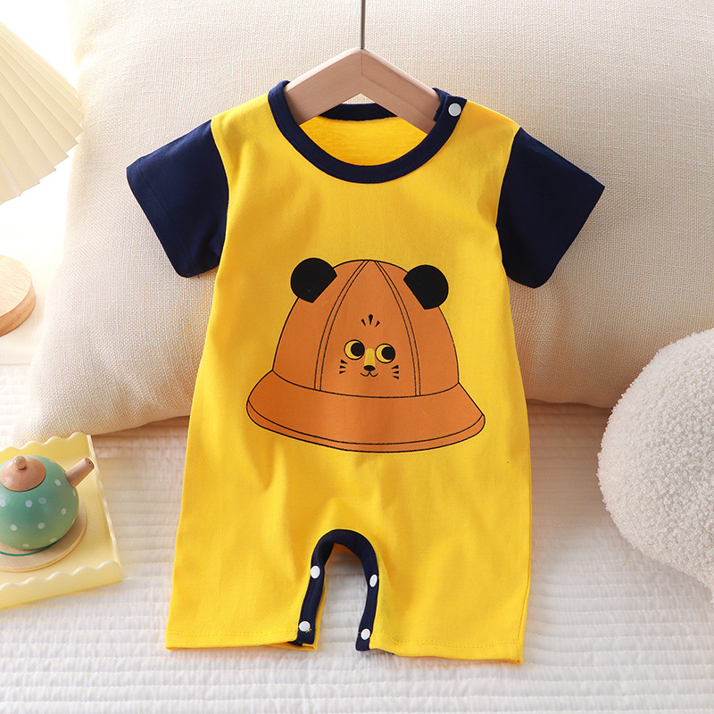 Новая летняя одежда для новорожденных, хлопковый тонкий комбинезон с короткими рукавами и открытым концом, детский цельный комбинезон