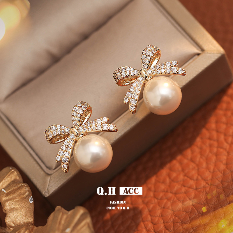 Серьги с жемчугом и бантом, новинка 2023 года, модные весенне-летние серьги из стерлингового серебра высокого класса, доступные роскошные элегантные серьги для женщин