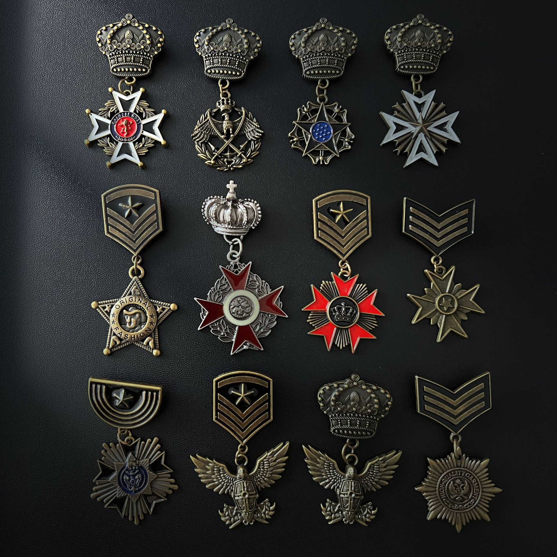 Qinggu делает старый военный значок вентилятора булавка Корона пятиконечная звезда значок булавка поколение волос