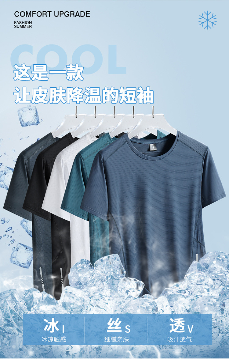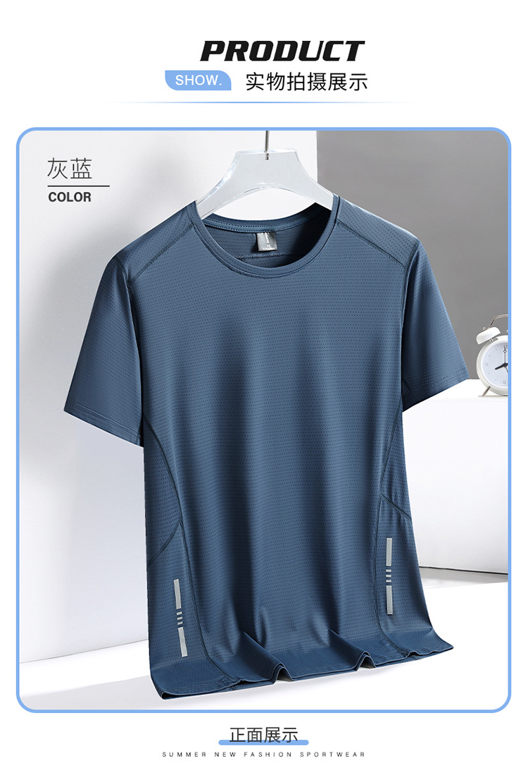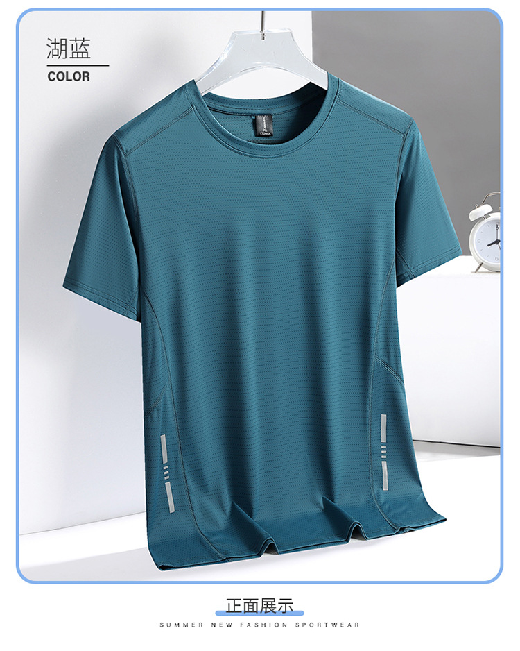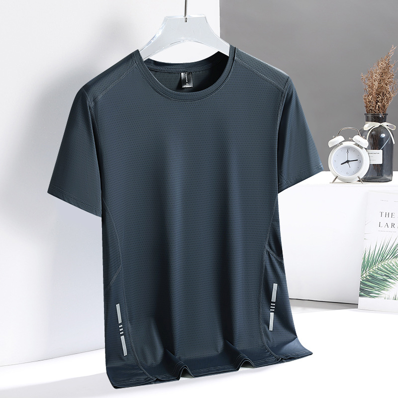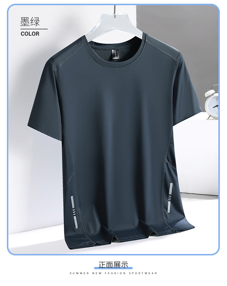 Короткие рукава мужской новый быстрый сухой футболку мужской летний новый ледяной шелк дышащий топ бег фитнес свободная спортивная одежда