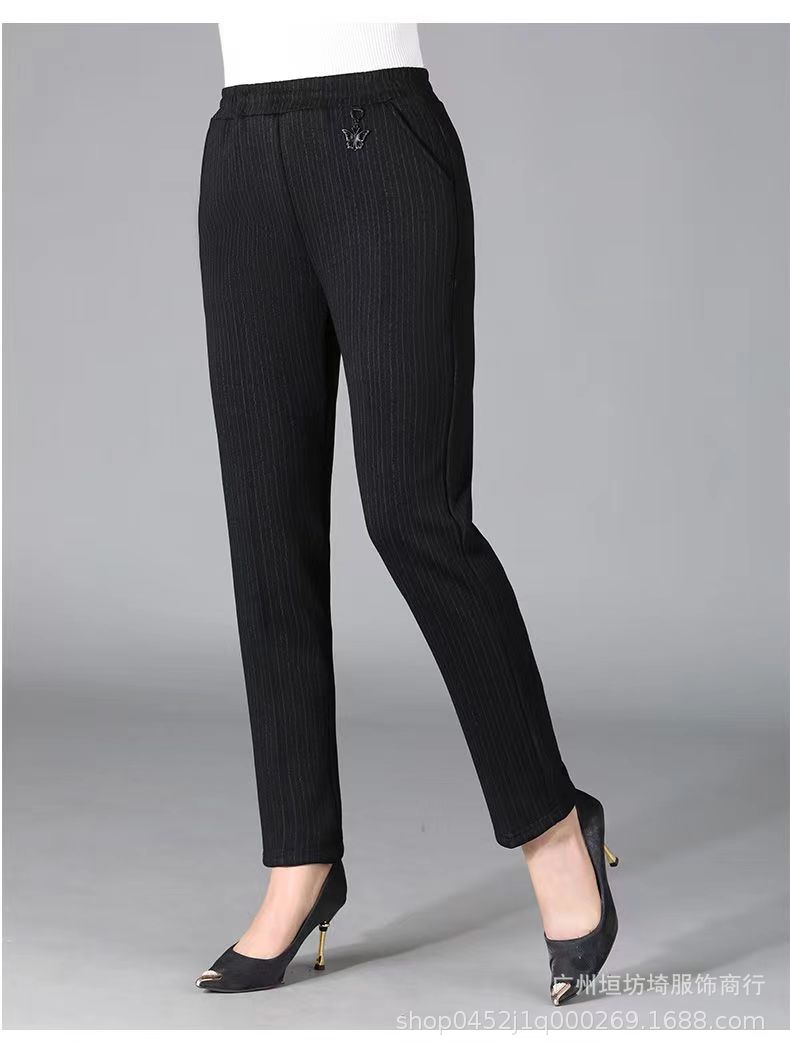 Осенние женские брюки с высокой талией для женщин среднего и старшего возраста, брюки-мом с эластичной талией, повседневные эластичные женские брюки, укороченные облегающие брюки.