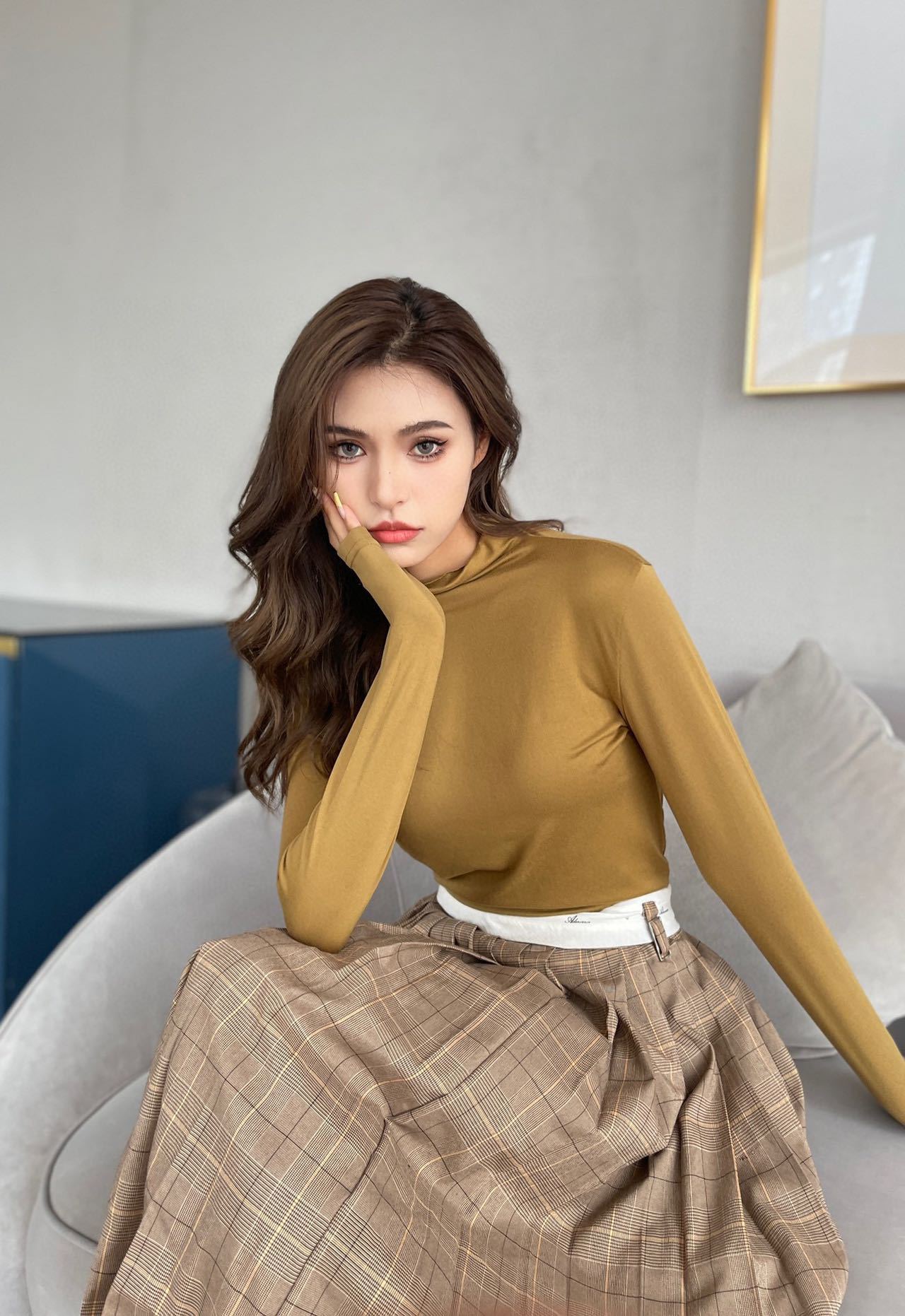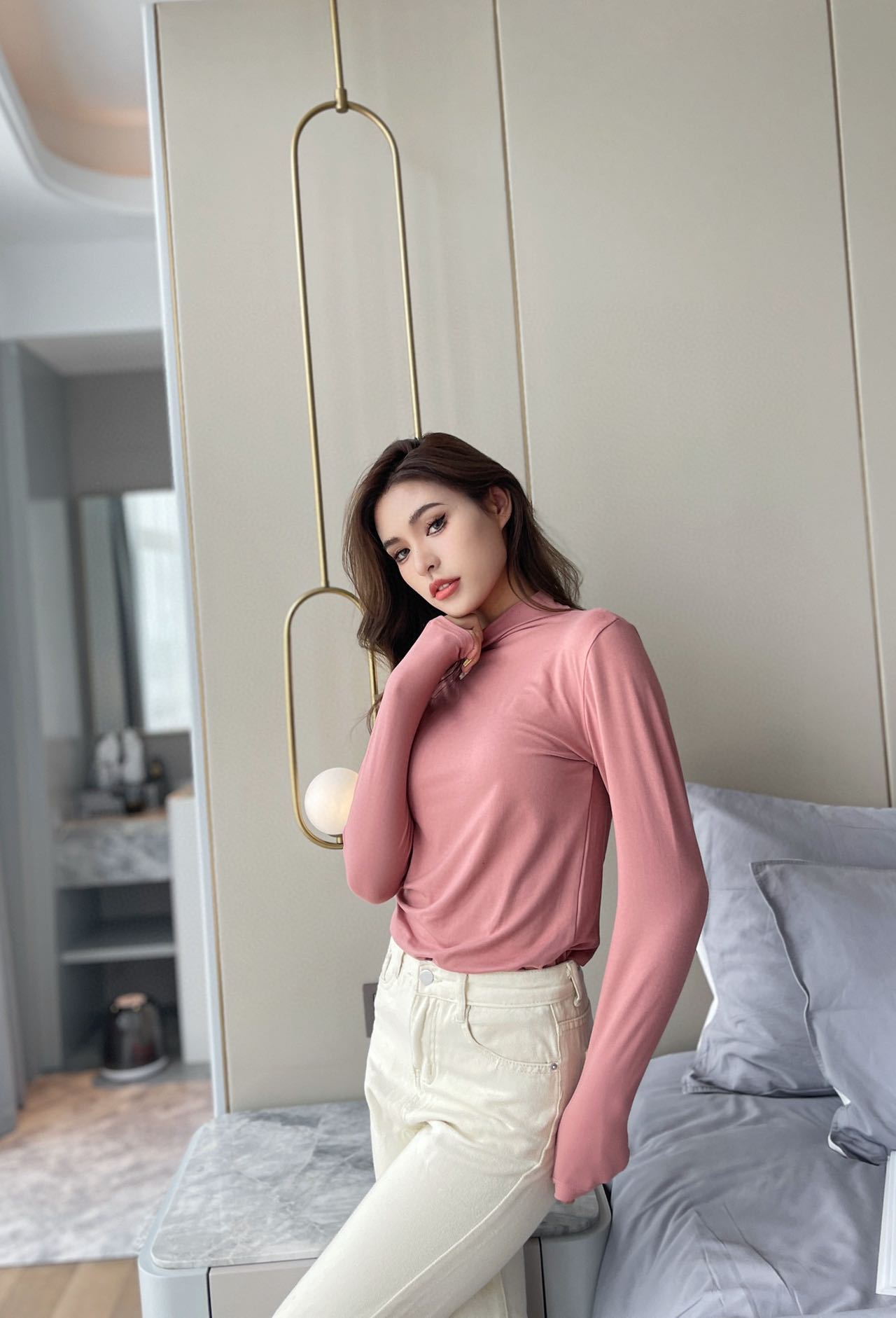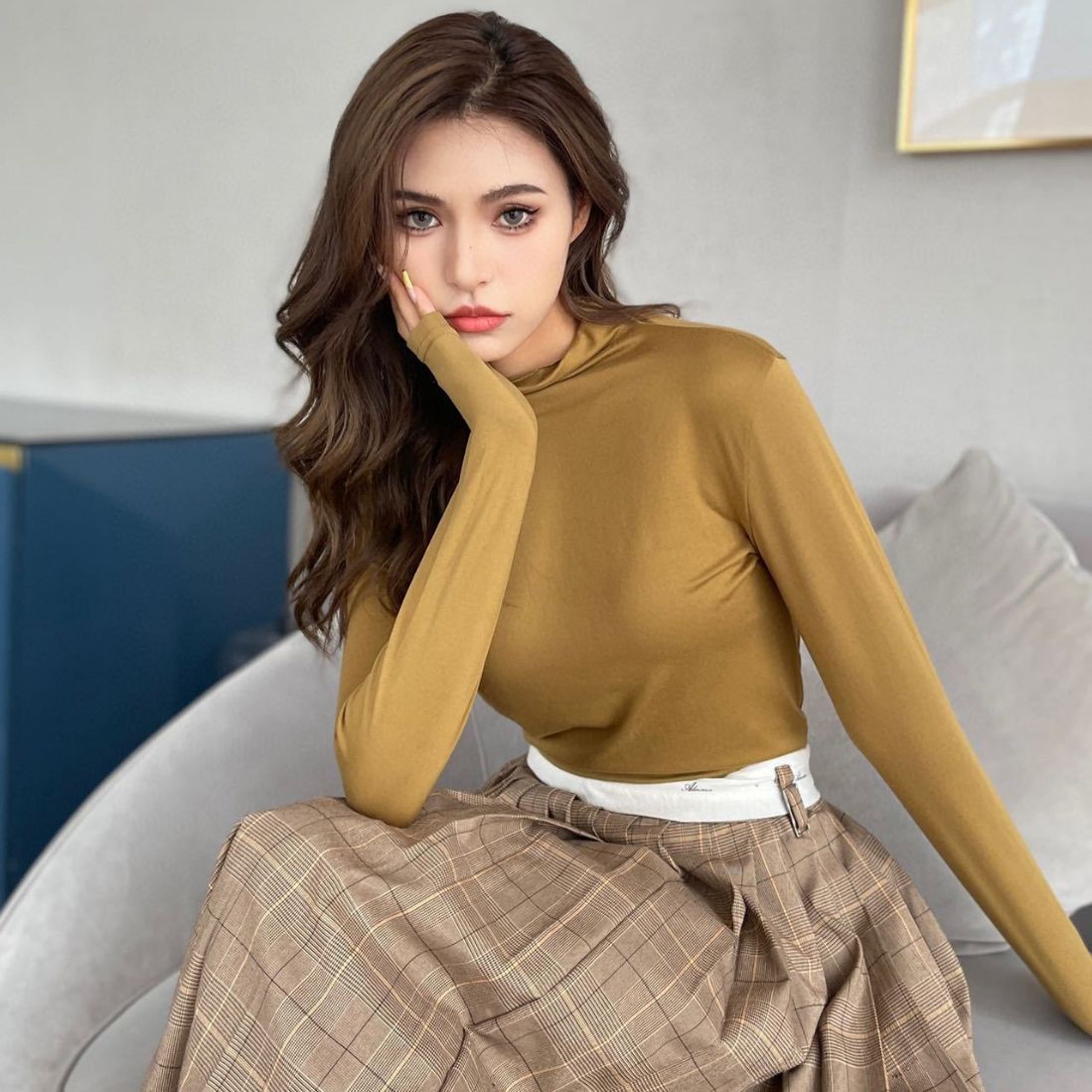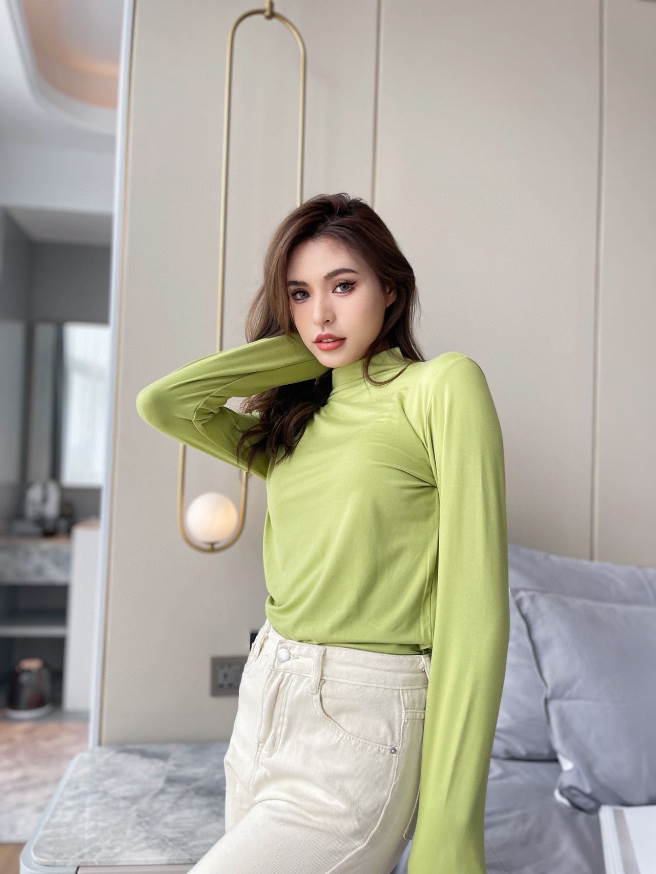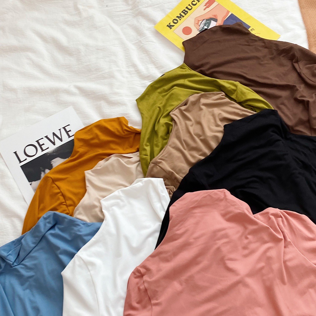 2023 Весна Осень Зима Новая Девятицветная Маска из молочного шелка с воротником до локтя Базовая рубашка Приятный для кожи Узкий женский топ с высокой эластичностью и длинными рукавами