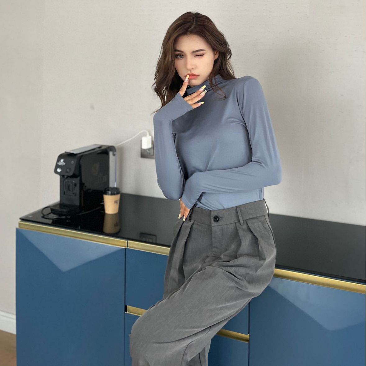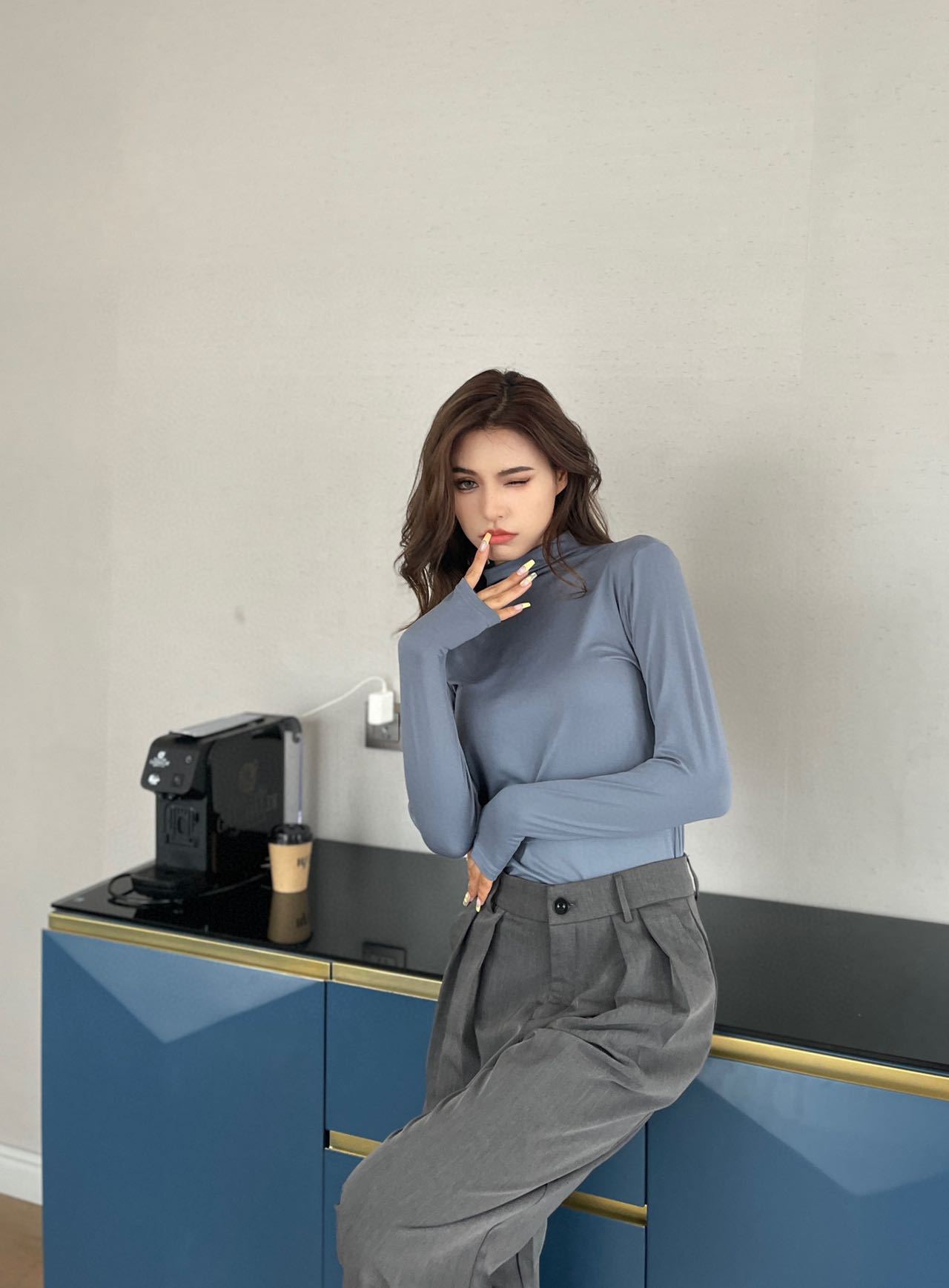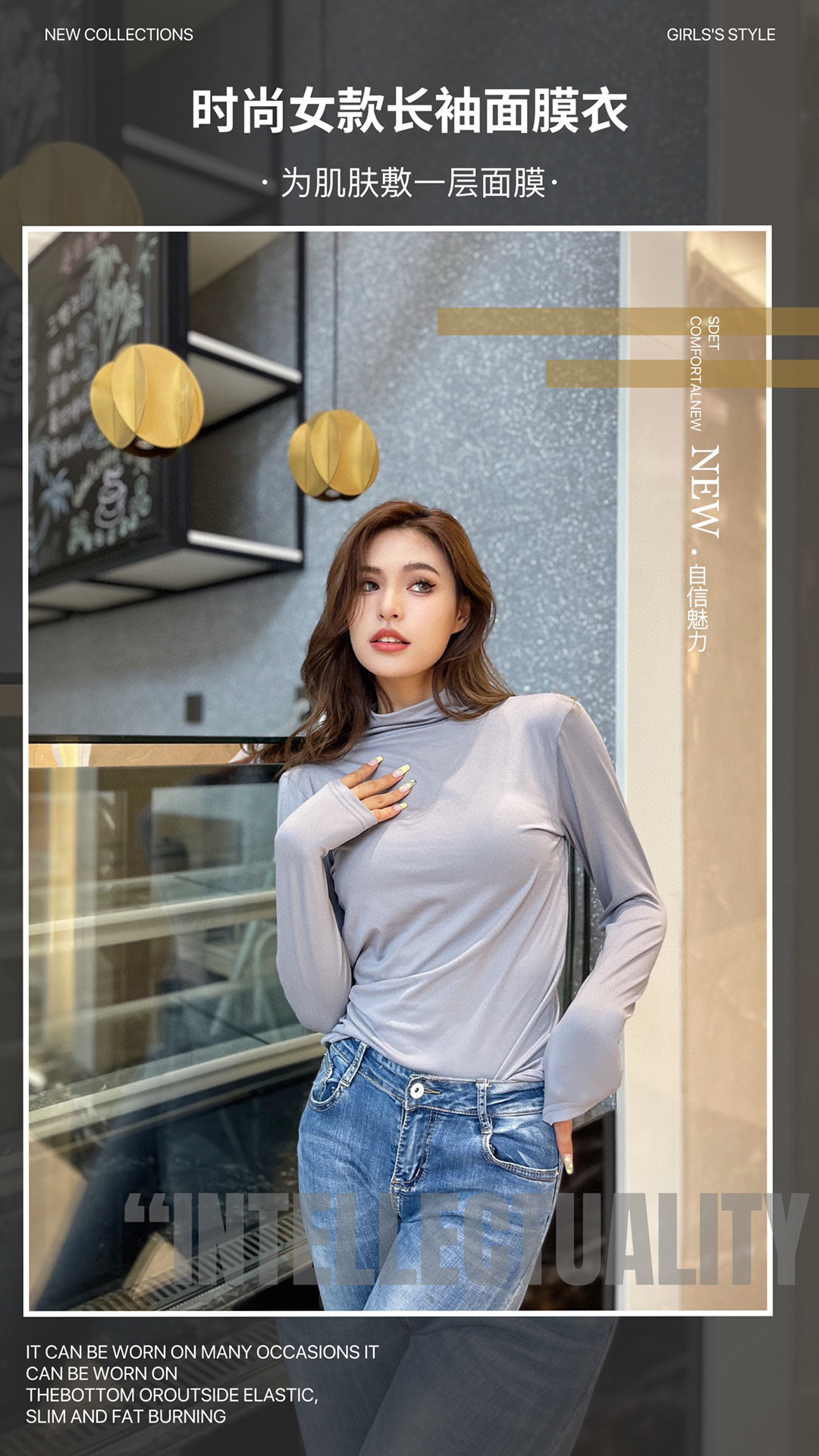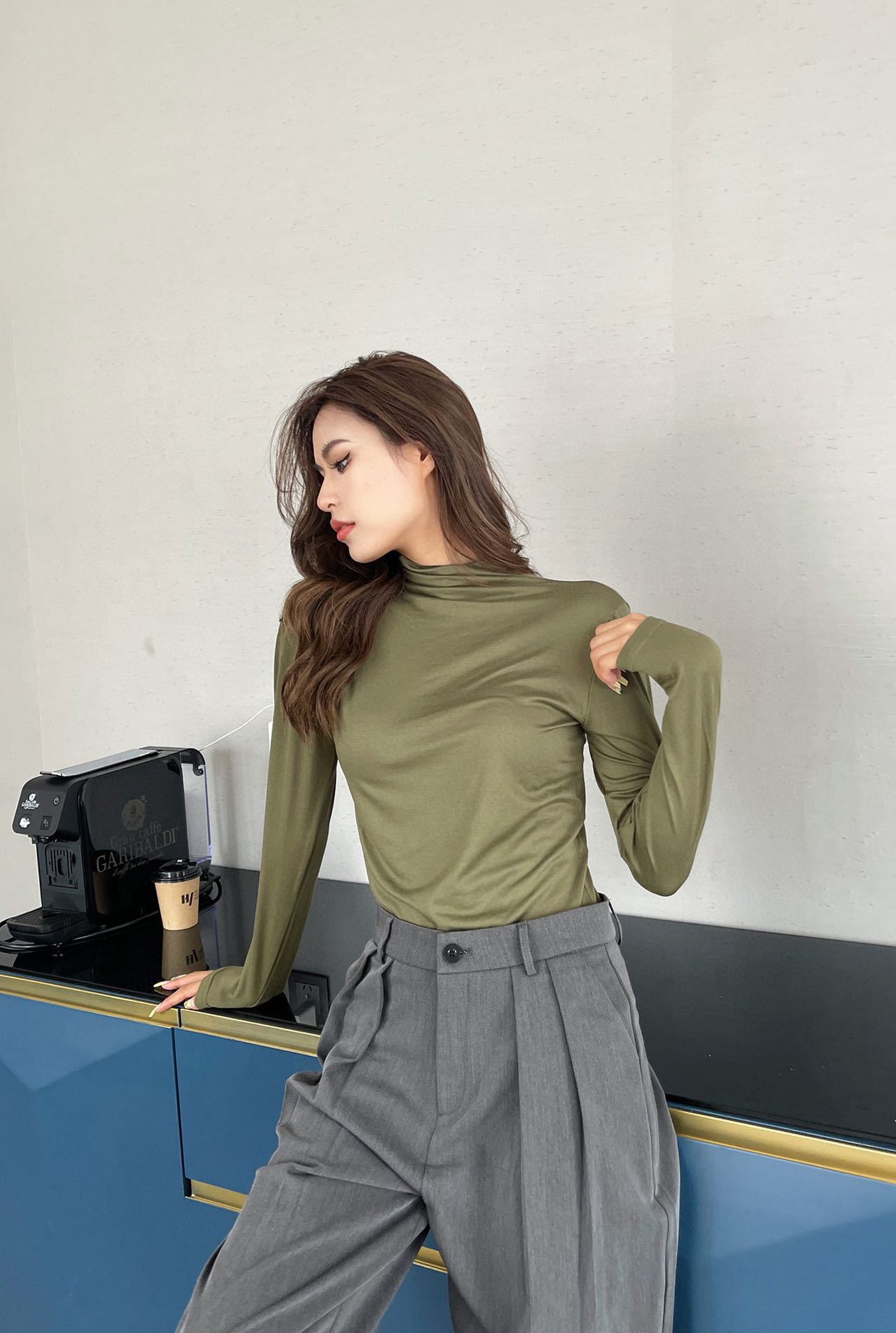 2023 Весна Осень Зима Новая Девятицветная Маска из молочного шелка с воротником до локтя Базовая рубашка Приятный для кожи Узкий женский топ с высокой эластичностью и длинными рукавами