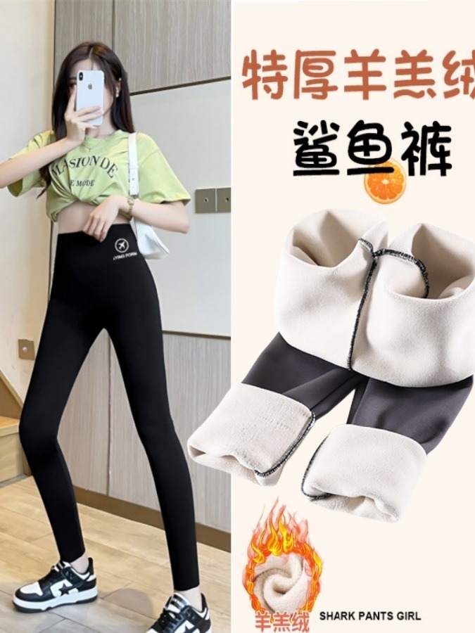 Брюки с акулой ягненка, женская верхняя одежда, осенне-зимняя флисовая подкладка, утепленные облегающие Леггинсы для йоги больших размеров с высокой талией