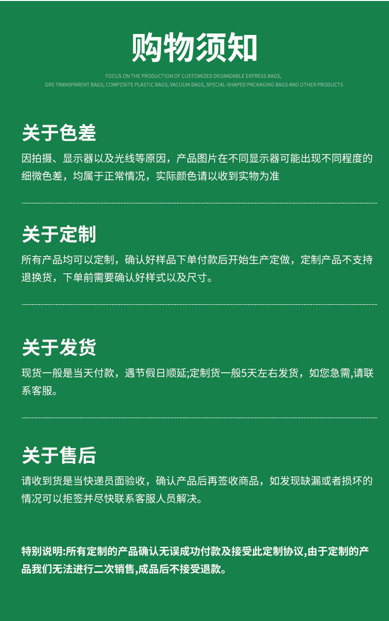 | 订 制 | 可按客户要求印刷图案、尺寸、袋型、开窗等要求订制 |