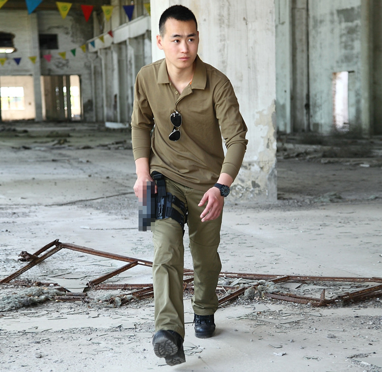 Быстросохнущая тактическая армейская футболка с длинными рукавами и поло с лацканами Спорт на открытом воздухе с длинными рукавами