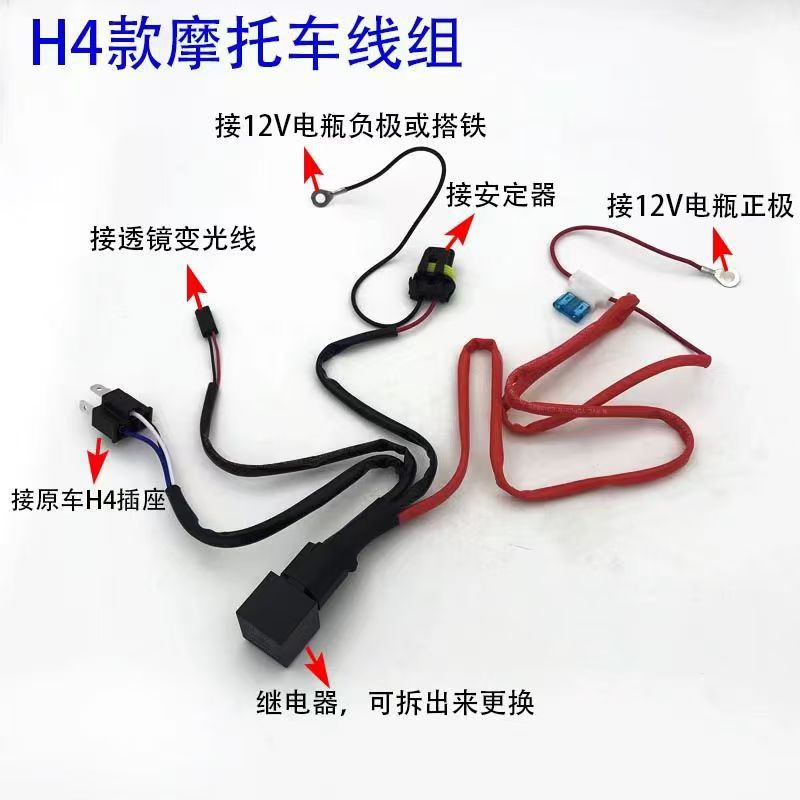 Мотоциклетная Модифицированная Бифокальная линза H4, одно перетаскивание, одна группа переменного света, ксеноновая лампа, одно перетаскивание, один жгут проводов